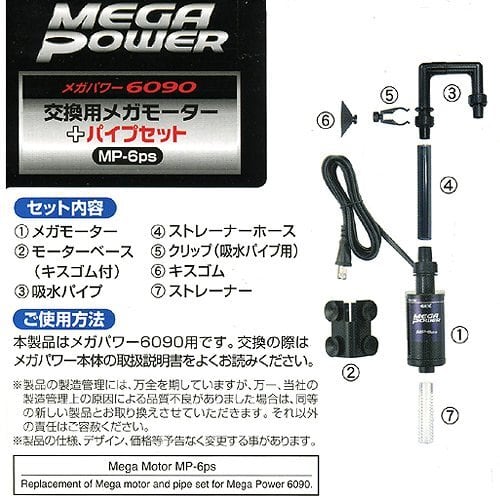 ジェックス GEX AQUA FILTER 交換用メガモーター+パイプセット MP-6ps メガパワー6090用交換ポンプ