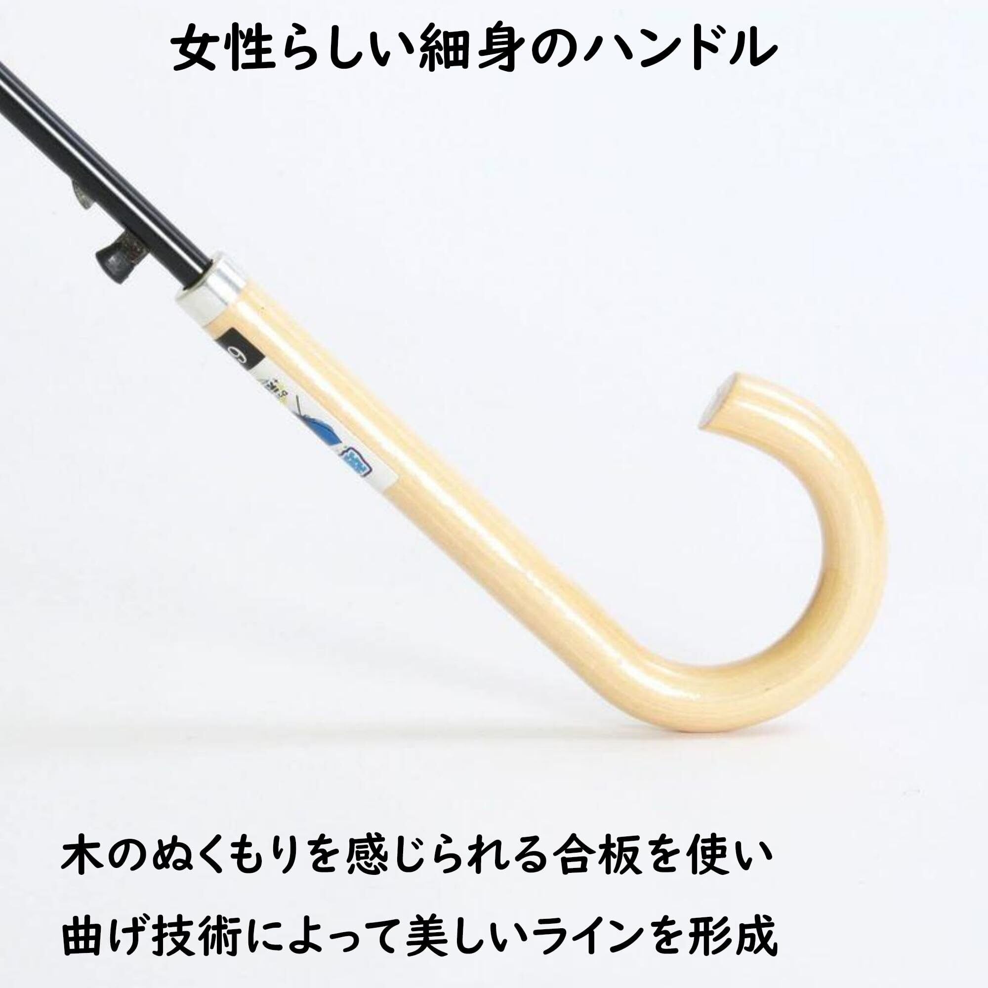 ベーシックスタンダード 長傘 レディース 晴雨兼用 内側 日傘コーティング UV&遮光 99% 58cm ワンタッチ ジャンプ傘 丈夫 耐風 グラスファイバー骨 おしゃれ 木ハンドル かわいい ストライプ ネイビー