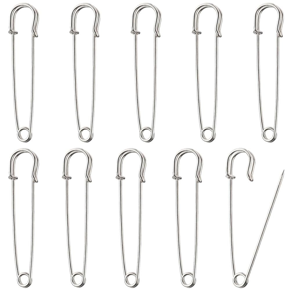 安全ピン 100mm 大きい安全ピン 10個セット 特大 ロック安全ピン 金具 ロック針 キルトピン おしゃれ ブローチピン 針 セイフティピン アクセサリーパーツ スカートや帽子など ハンドメイド 手芸素材 ステンレス鋼 高耐久 (シルバー)