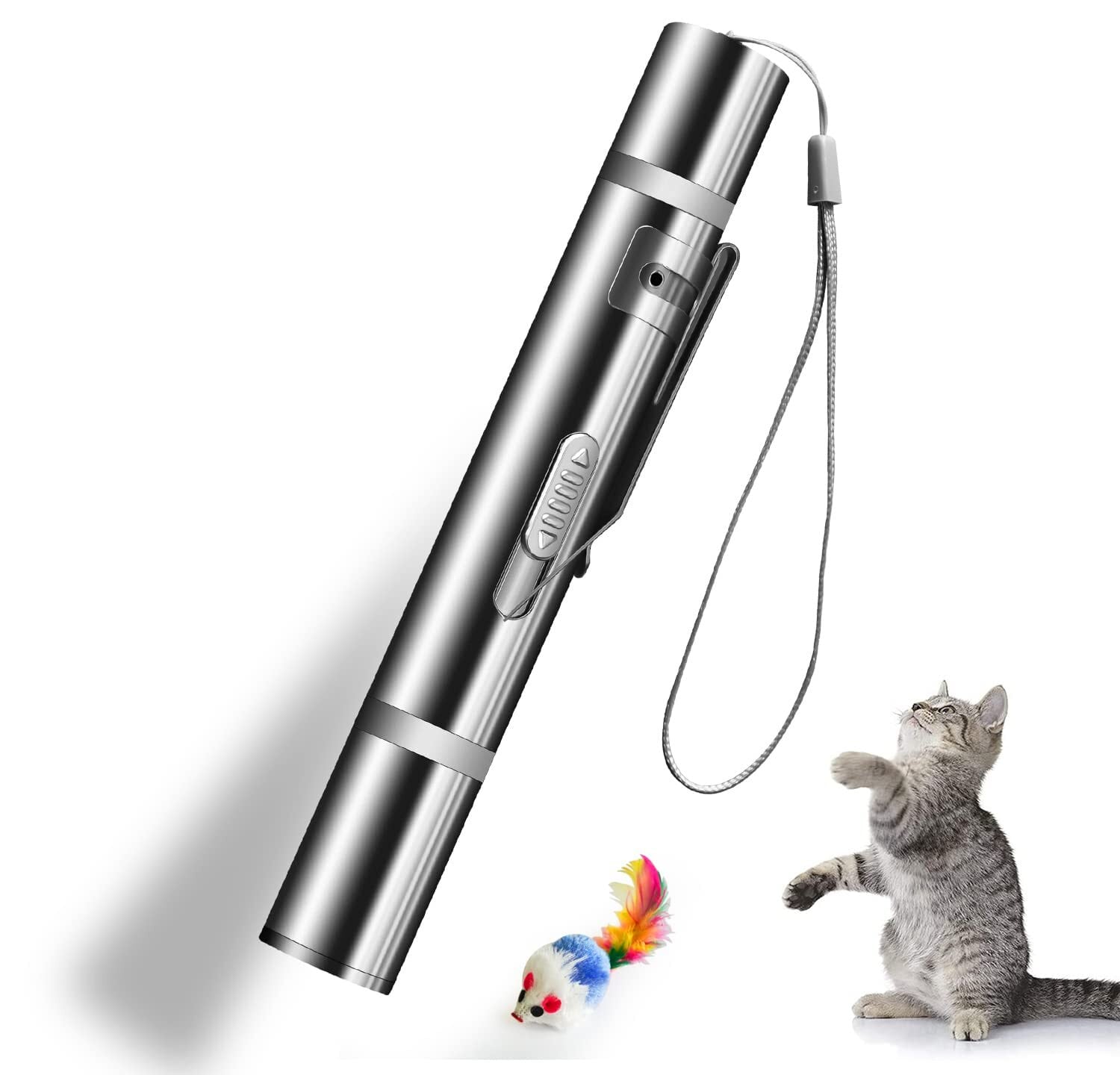 【安全な素材】ステンレス製のおもちゃは無味で、安全性に配慮されています。LEDライトが付属しており、猫の目に負担をかけることがありません。また、LED懐中電灯としてペットの散歩にも使えます。