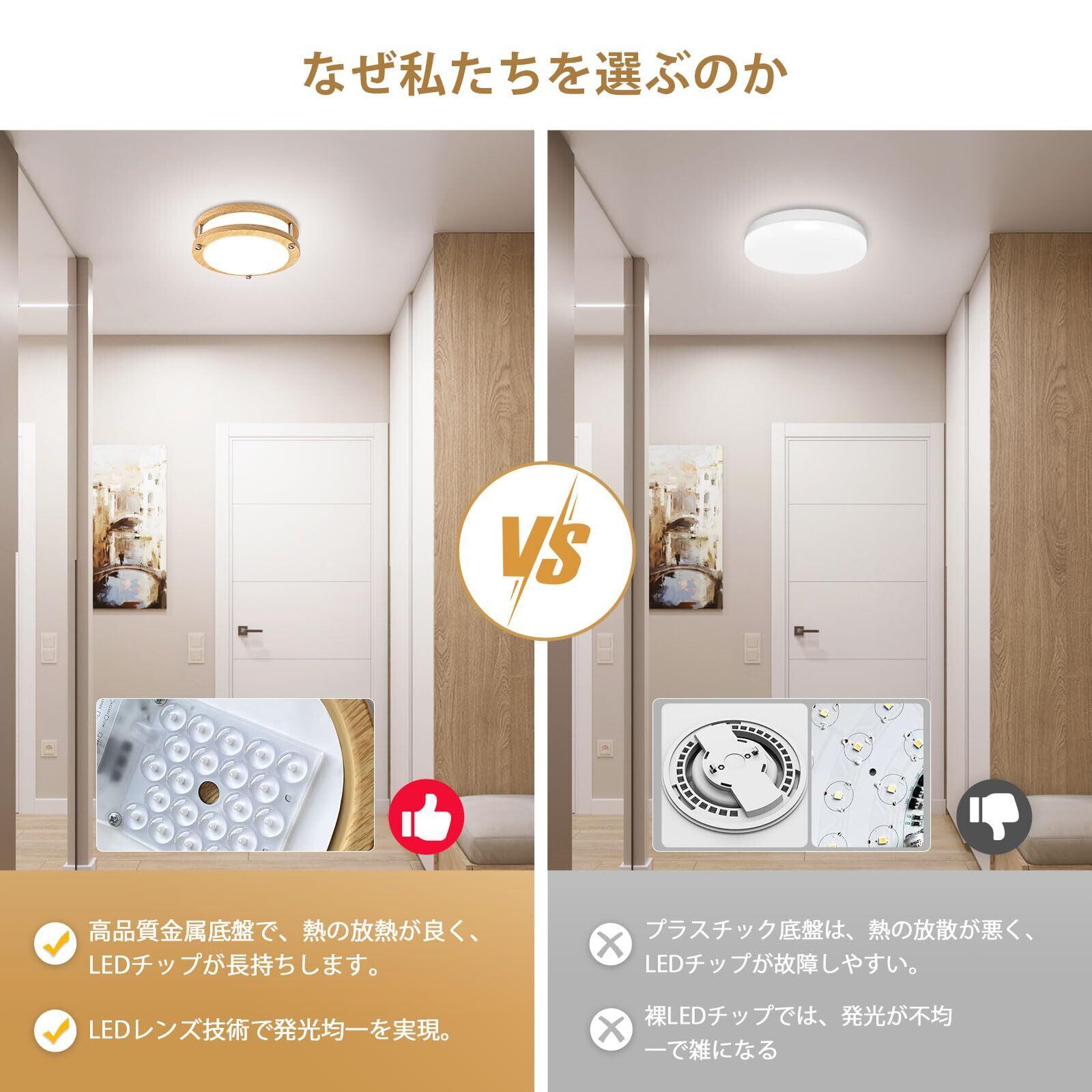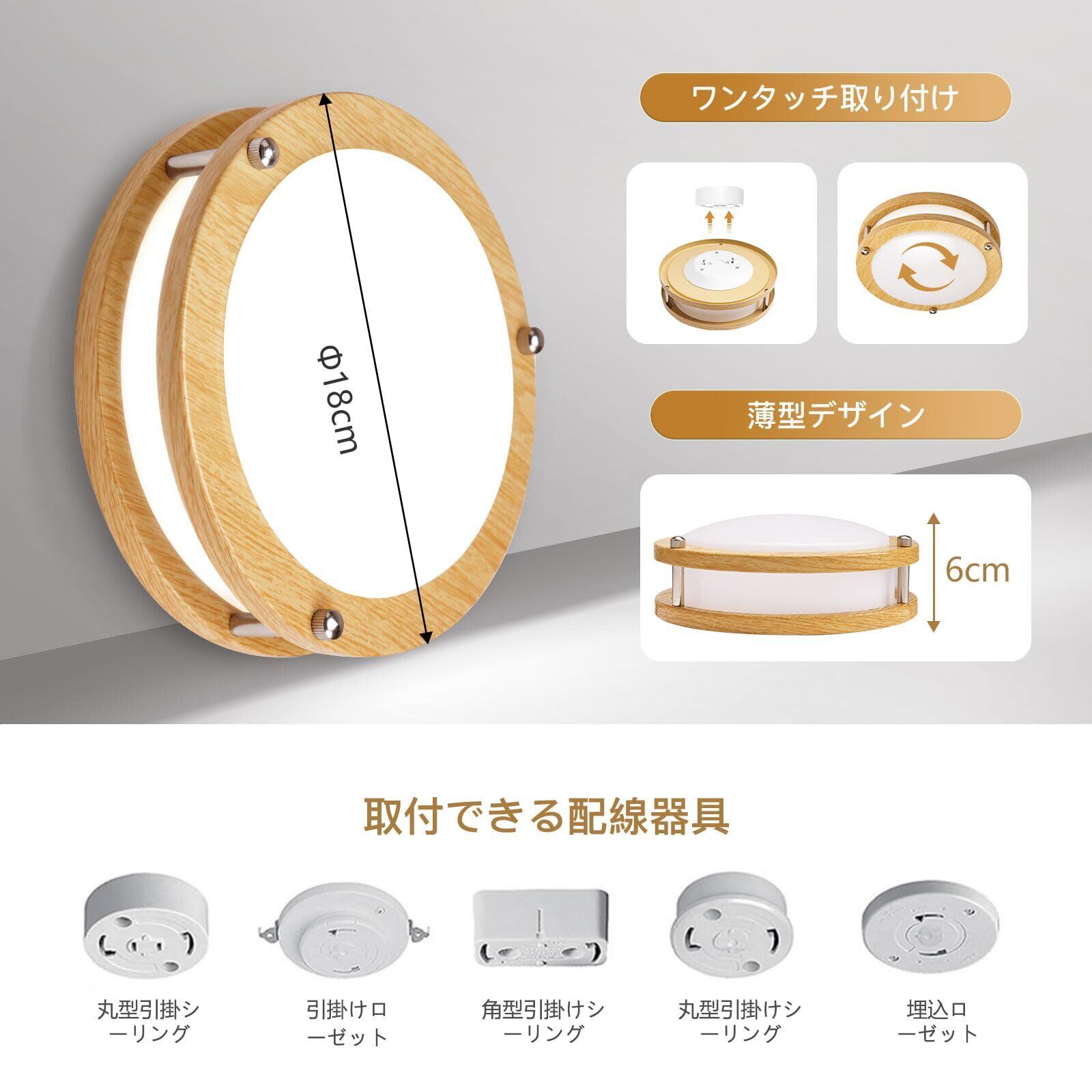 Elekeed シーリングライト 小型 木目調 昼光色 1300lm 照明器具 天井 LED ワンタッチ取付 コンパクト 天井照明 玄関 廊下 トイレ 洗面所 階段 台所 長寿命 高演色 節電対策 2個入り