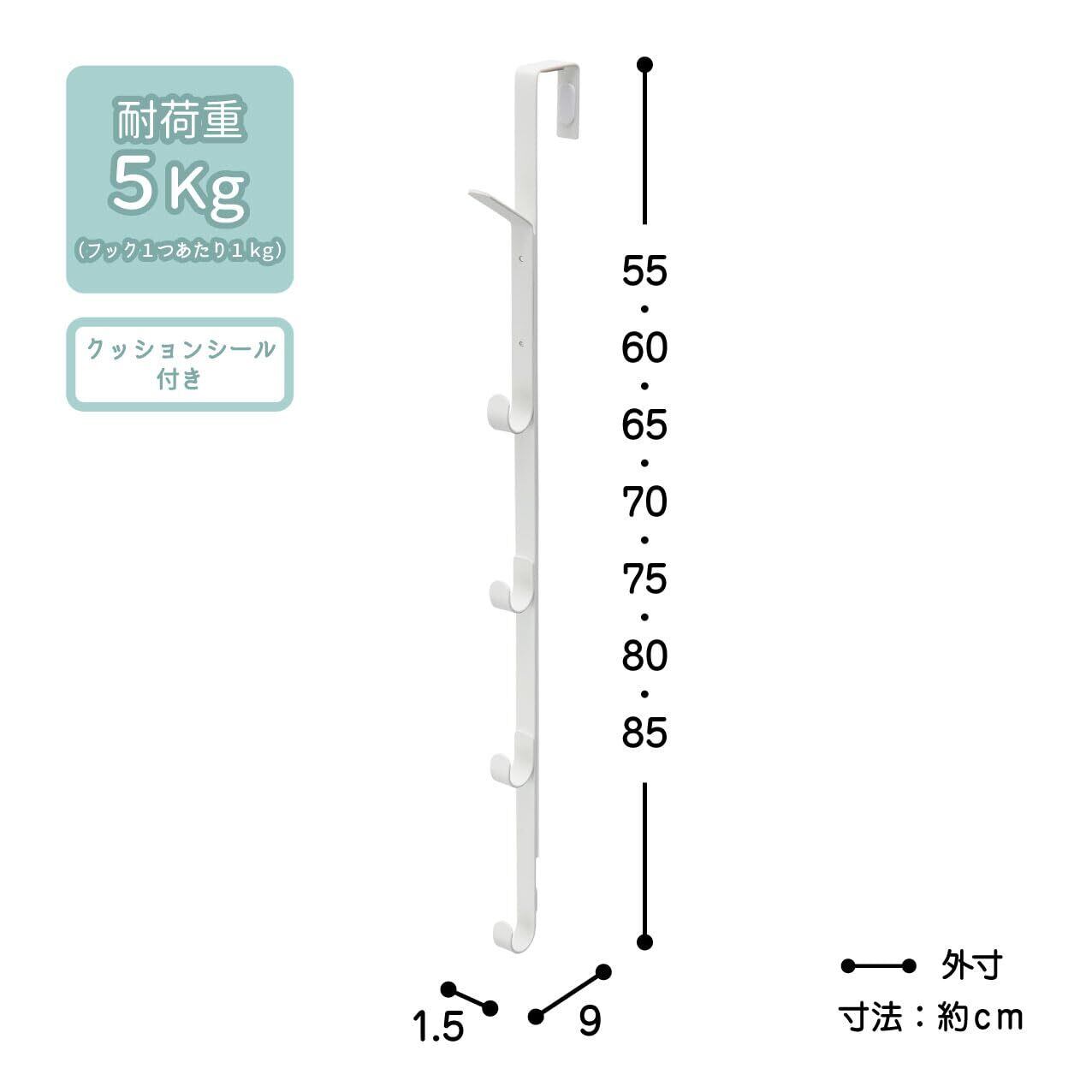 ベルカ(Belca) 【2個セット】ドアハンガー 引っ掛けるだけの簡単設置! ドアフック 伸縮タイプ 2個セット ホワイト (1個あたり)幅1.5×奥行9×高さ55~85cm ドア掛け 衣類収納 カバン掛け バッグ収納 帽子掛け クッションシール付 CH-DHW2E