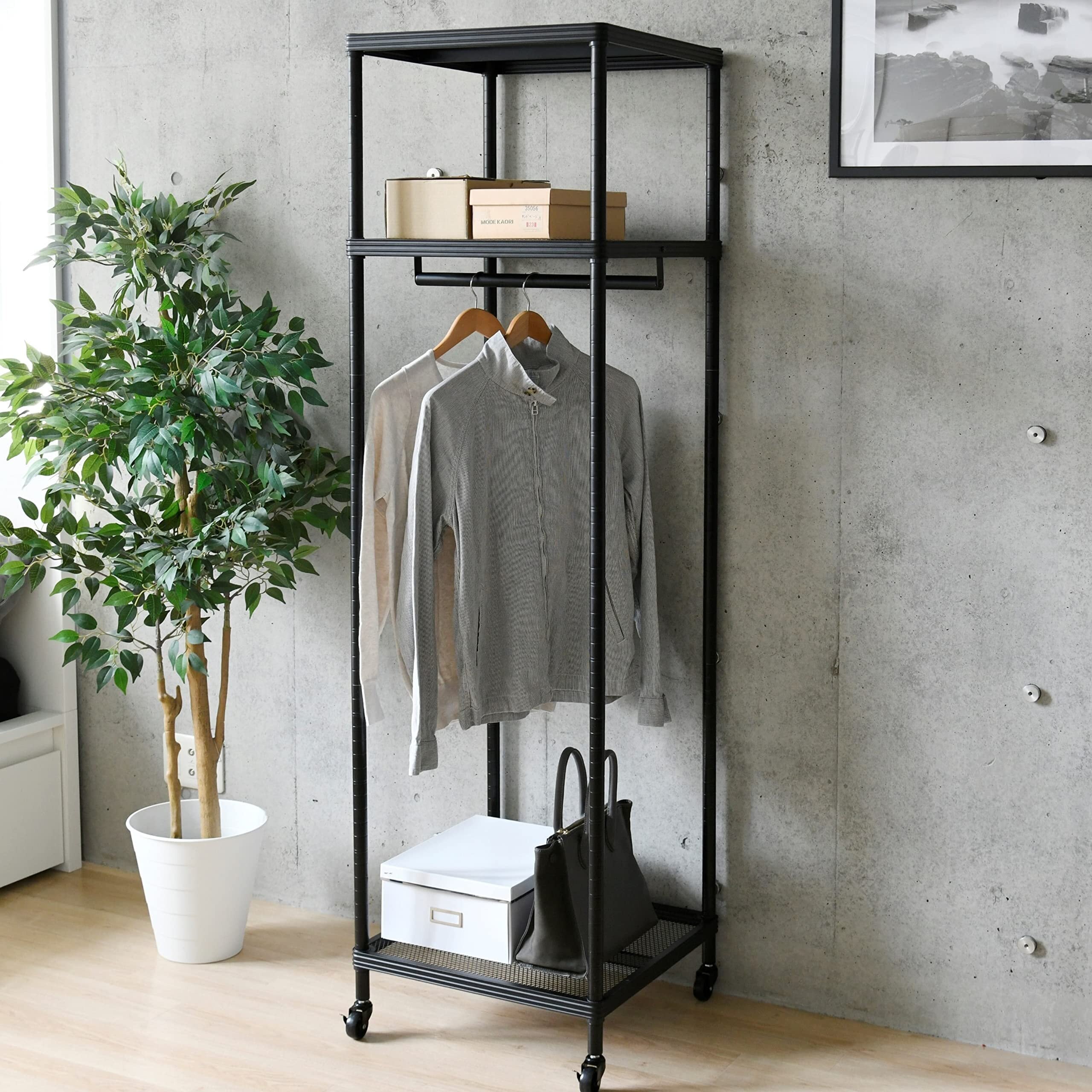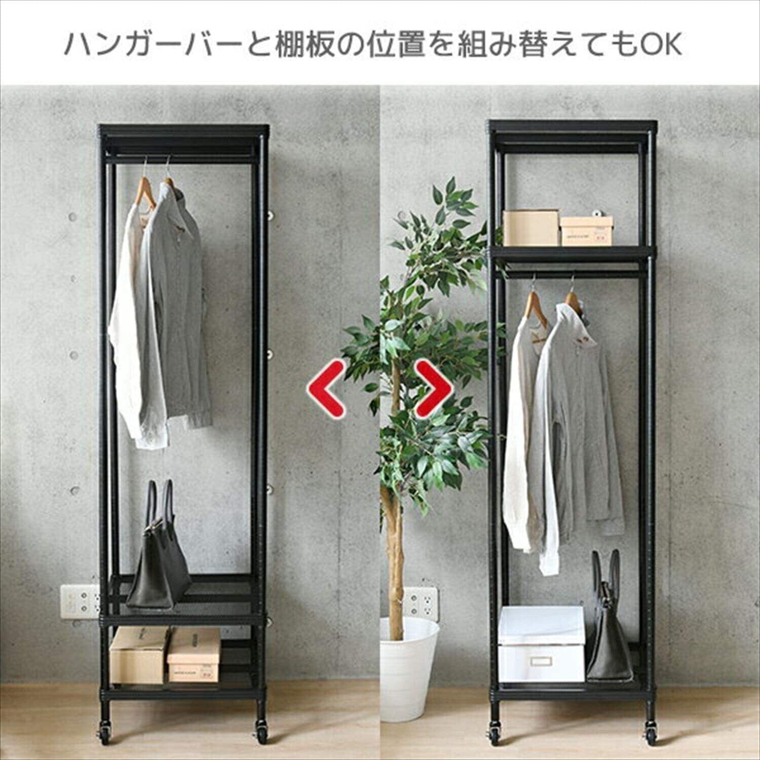 山善(YAMAZEN) ハンガーラック (スリム) 頑丈 幅50.5×奥行50.5×高さ182cm 【全体耐荷重60㎏】 服・カバン・小物がこれ1つで収納できる 棚板可動 組立品 ブラック VNW-18050CJ(BK)