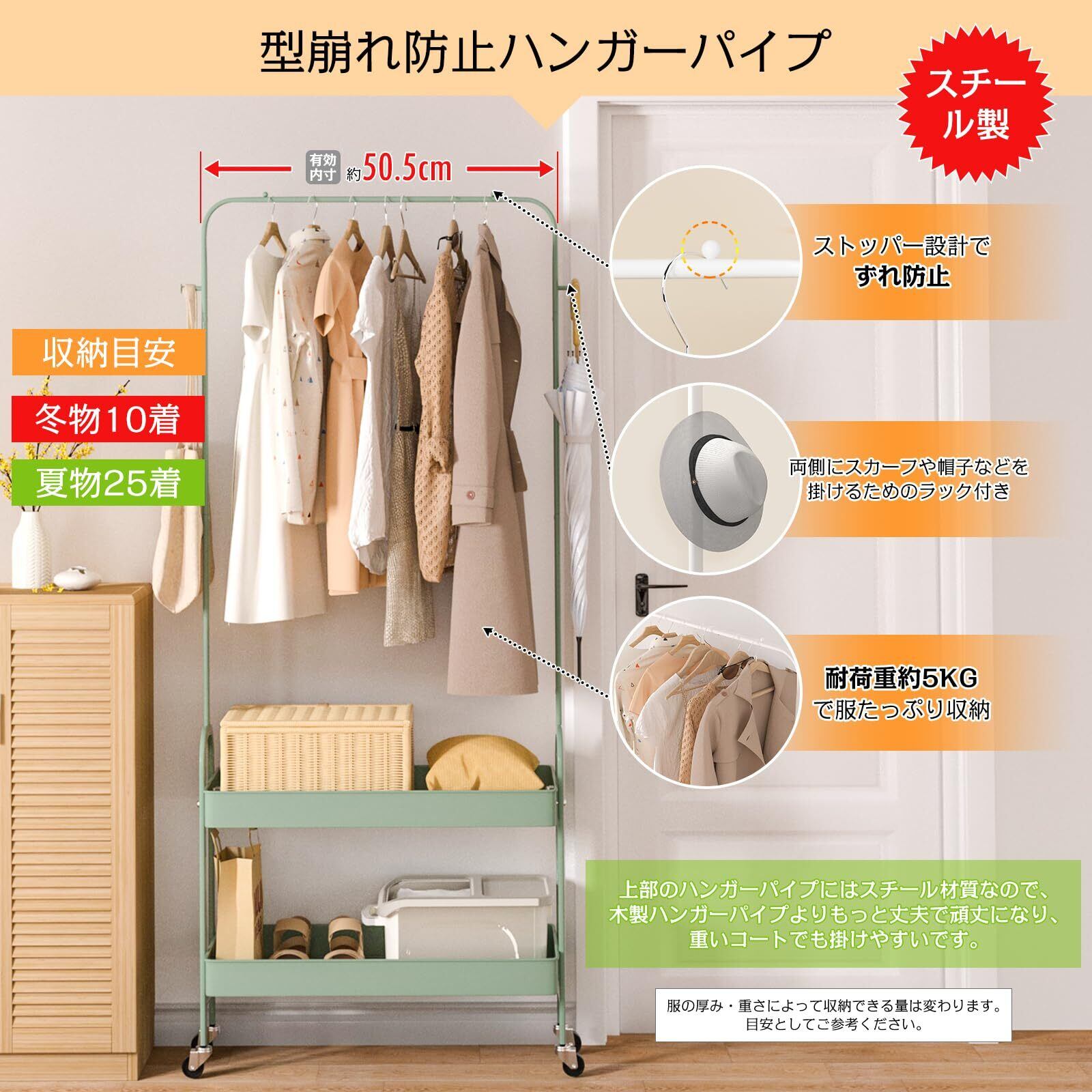 【ハンガーラック 頑丈 二本支柱強化】WISH SUN ハンガーラックは高品質スチール製で、従来の木製 ハンガーラックよりも堅牢で耐久性に優れ、揺れることなくてパイプも曲がりにくいです。更に、ハンガーラック キャスター付きで二本の支柱を追加しており、耐荷重能力が強くなります。上部のハンガーパイプの耐荷重は約5kgで夏物なら25着、冬物なら10着掛けられます。WISH SUN ハンガーラック 下部の各層の耐荷重は10kgで、厚手のセーターを収納しても崩れる心配はありません。WISH SUN ハンガーラックは材質から構造まで最大限の安定性と耐久性を確保するために設計されています。
