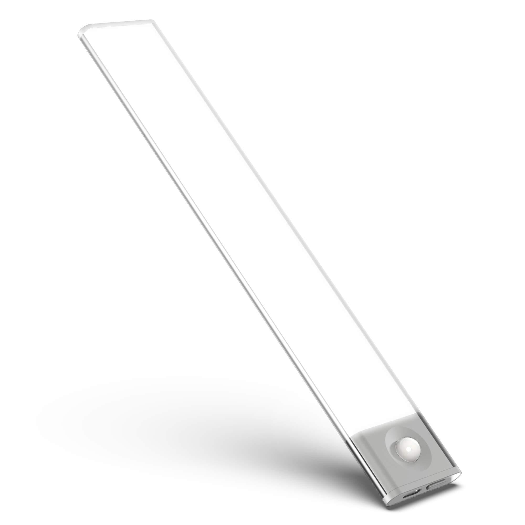 KURASHI LEDセンサーライト バーライト 屋内 室内 人感センサー 照明 無段階調光 超薄型0.88cm USB Type C 充電式 マグネット付 (長さ40cm シルバー 昼白色)