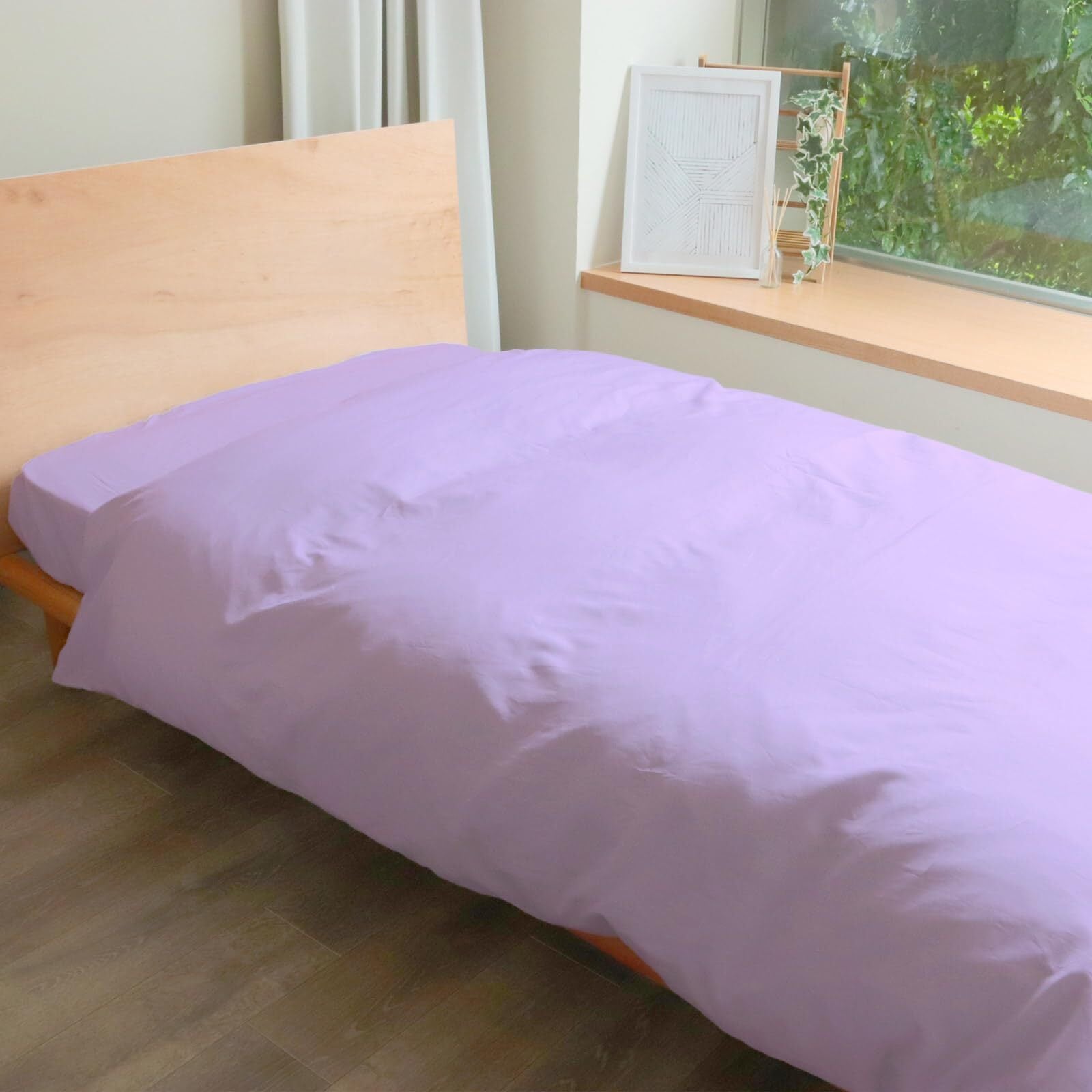 MORE 掛け布団カバー シングル 150x210cm 日本製 綿100% 無地 高密度200本 抗菌防臭加工 8ヶ所紐付き ホテル仕様 (シングル, ラベンダー)