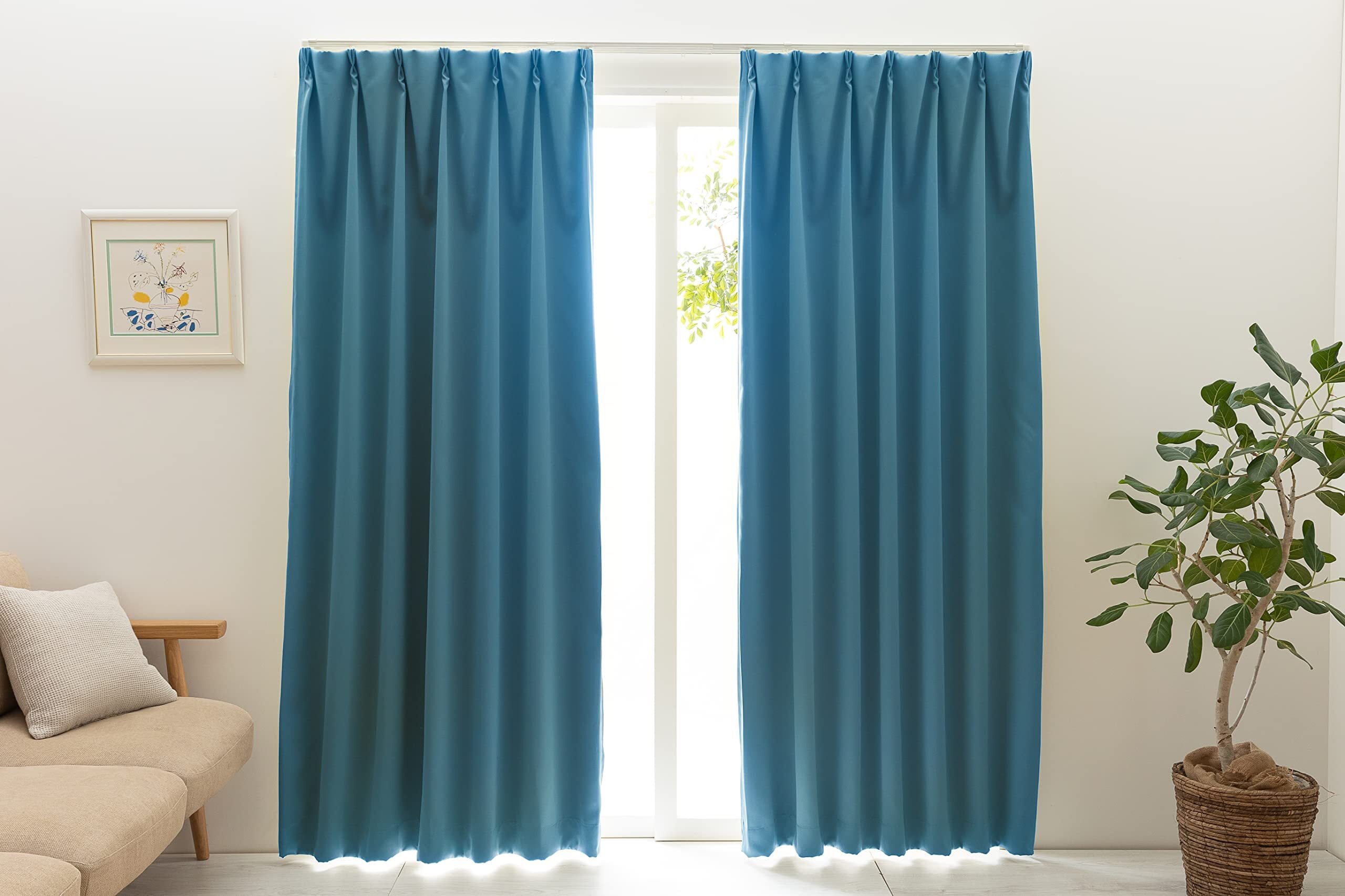 ユニベール 1級遮光 防炎 防炎ラベル付き 節電 省エネ 断熱 保温 日本製 無地 寝室 リビング カーテン 幅100cm×丈150cm 2枚 ベルーイ マリンブルー