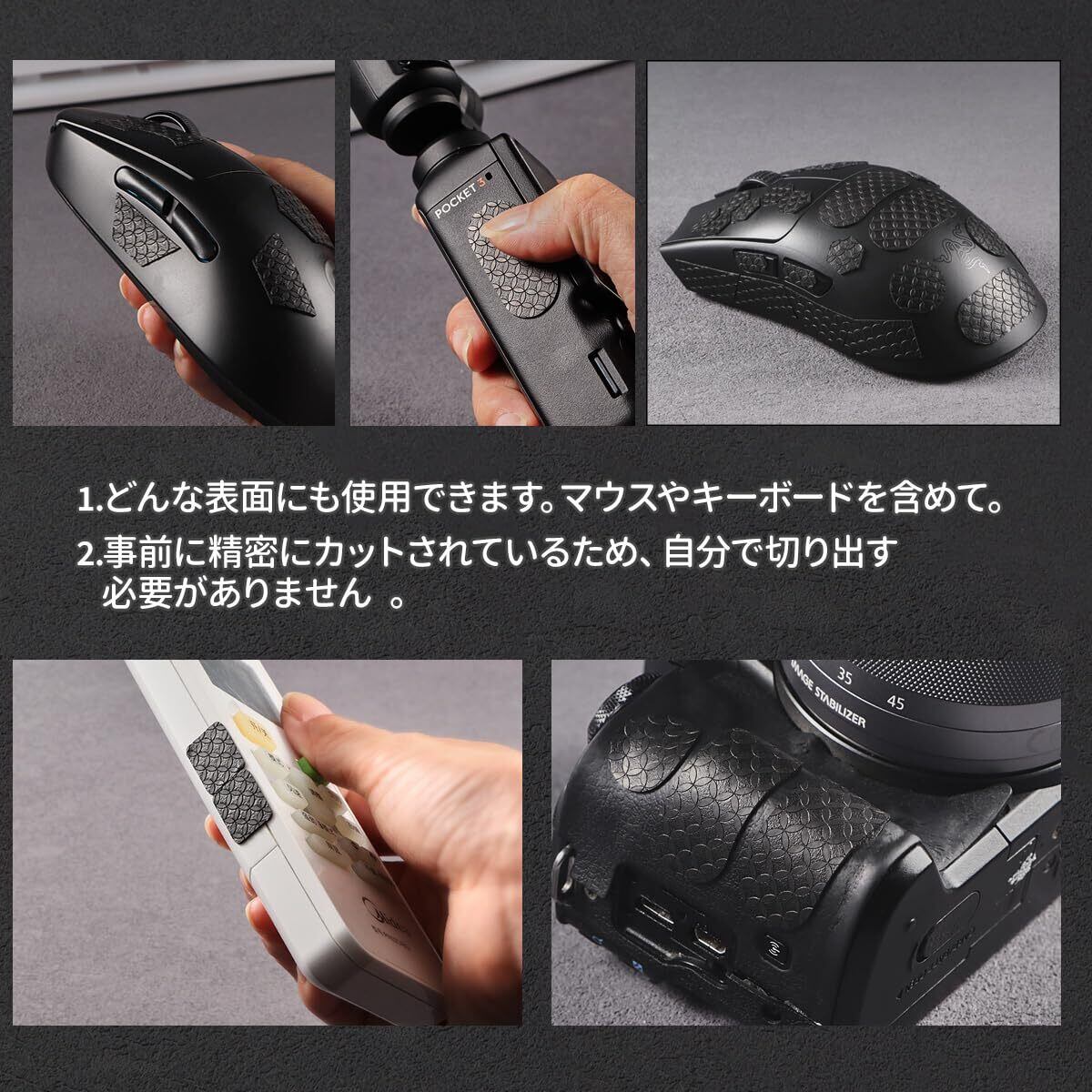 1. この製品は汎用の防滑ステッカーで、マウス、ゲームコントローラー、カメラ、リモコン、携帯電話、ゲーム機などのグリップ感を向上させるために使用できます。