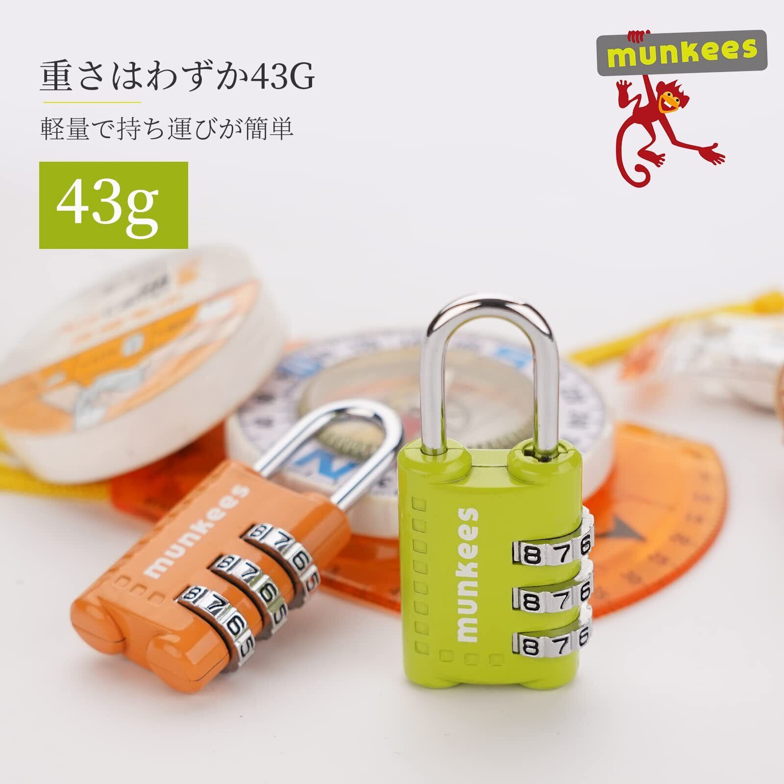 munkees ミニ パスワードロック 南京錠 旅行 ダイヤル式 ロック 暗証番号 荷物、スーツケース、バックパック用 (オレンジ)