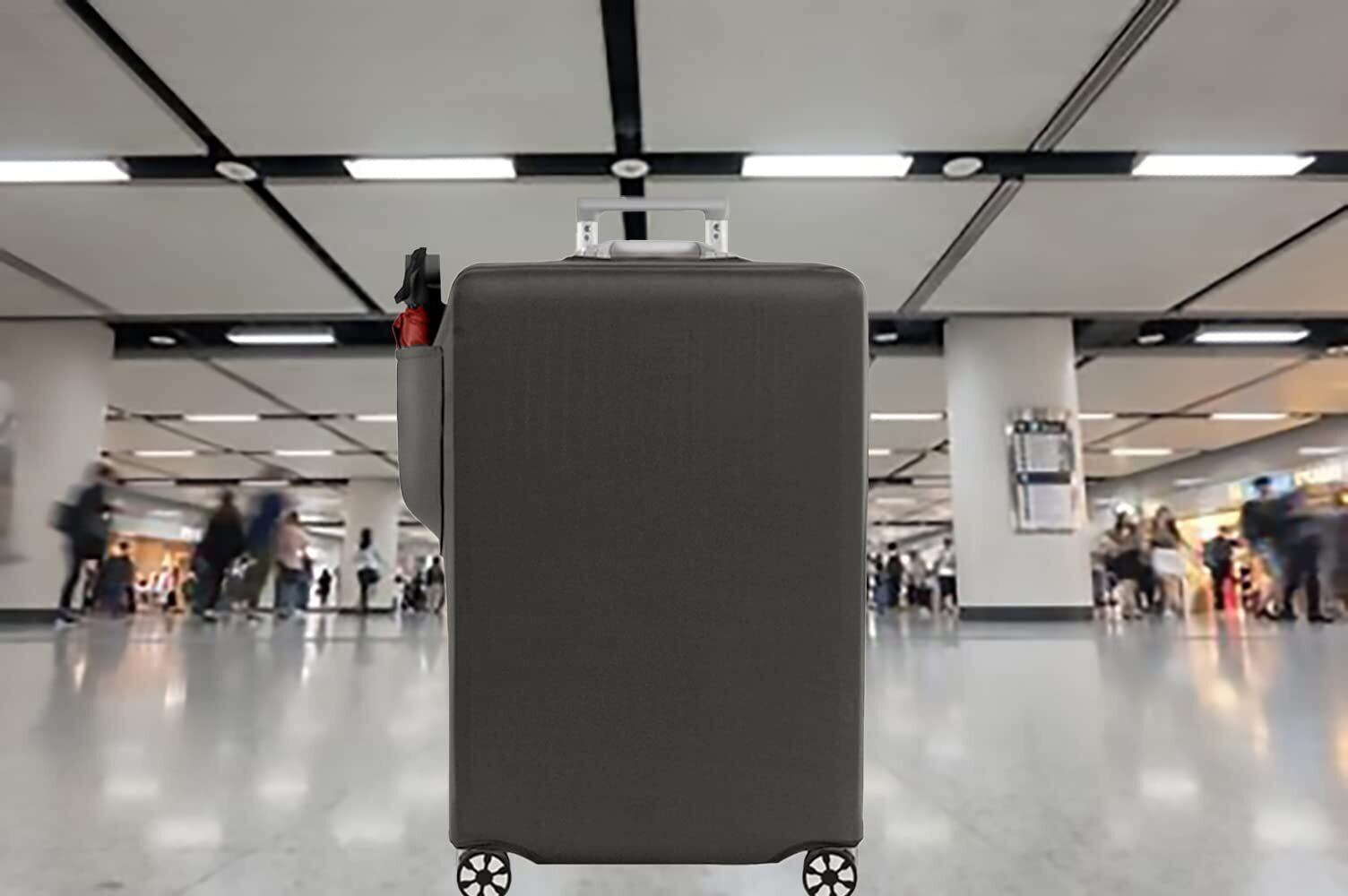 高弾性ポリエステル織物で作られ、肌に密着し、スーツケースが汚れたり傷が付いたりするのを防ぎ、スーツケースがすぐに識別されるようにします