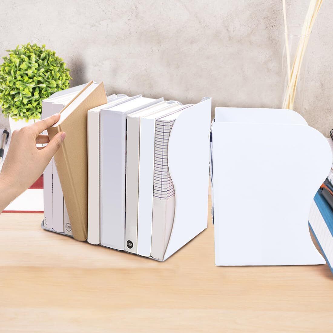 ブックエンド 本立て 伸縮自在 卓上収納 倒れない ブックスタンド 金属製 仕切りスタンド デスク整理 (ホワイト)
