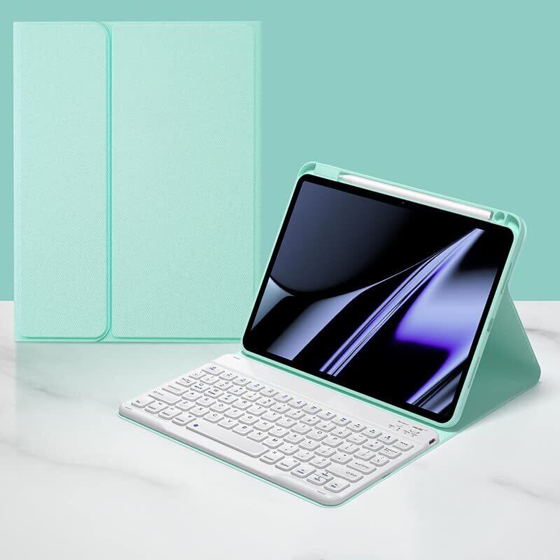 iPad 6 iPad 5 iPad Air2 キーボード ケース Apple Pencil 上部ペン収納 くぼみキー 入力しやすい アイパッド 第6/5世代 9.7インチ キーボード付き カバー 分離式 マグネット 薄型 ワイヤレス キーボード (iPad5/iPad6/Air2, ミント)
