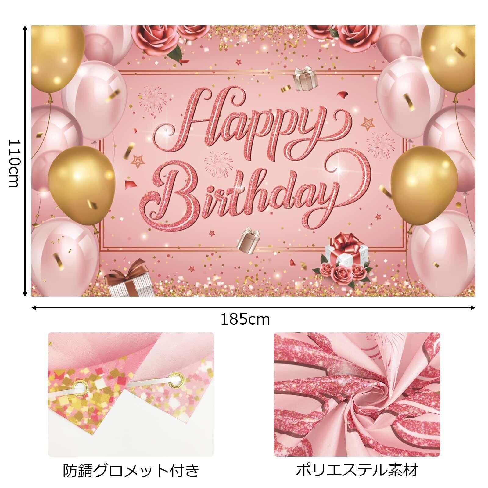 Paready バースデー タペストリー 誕生日 飾り付け 壁掛け フォトポスター 写真背景 壁飾り 大判 横 Happy Birthday おしゃれ 装飾 デコレーション パーティー お祝い 女の子 男の子 ローズゴルード