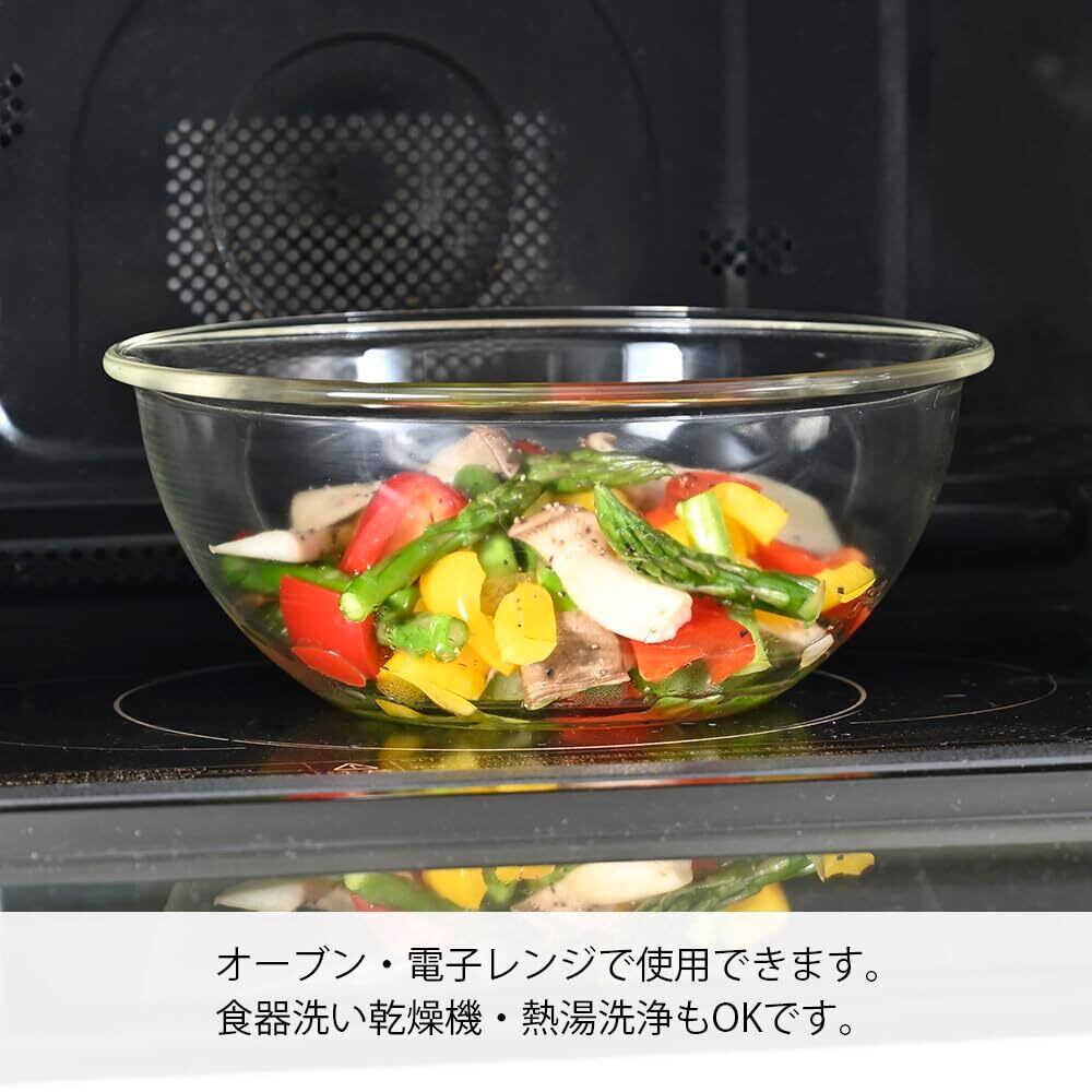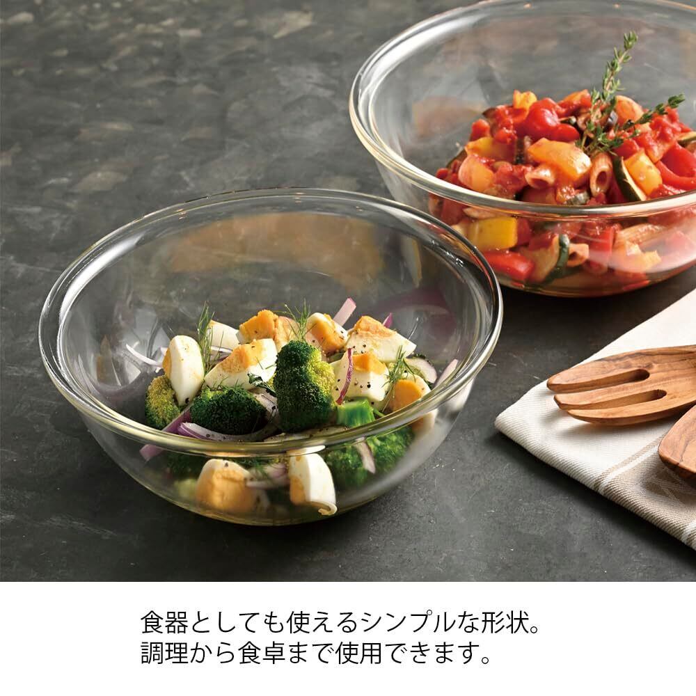 耐熱ガラスは日本製なので、供給も安定し品質も安全な耐熱ガラスのボウルです。調理以外にも食器として使えます。
