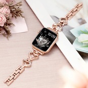 【Daturus】互換 アップルウォッチバンド Apple Watch バンド ハートの形 ダイヤモンド付き 金属ベルト iWatch series 10/9/8/SE/7/6/5/4/3/2/1対応 女性向け プレゼント 調節可能(ローズゴールド、(42mm Series 10) /41mm/40mm/38mm)