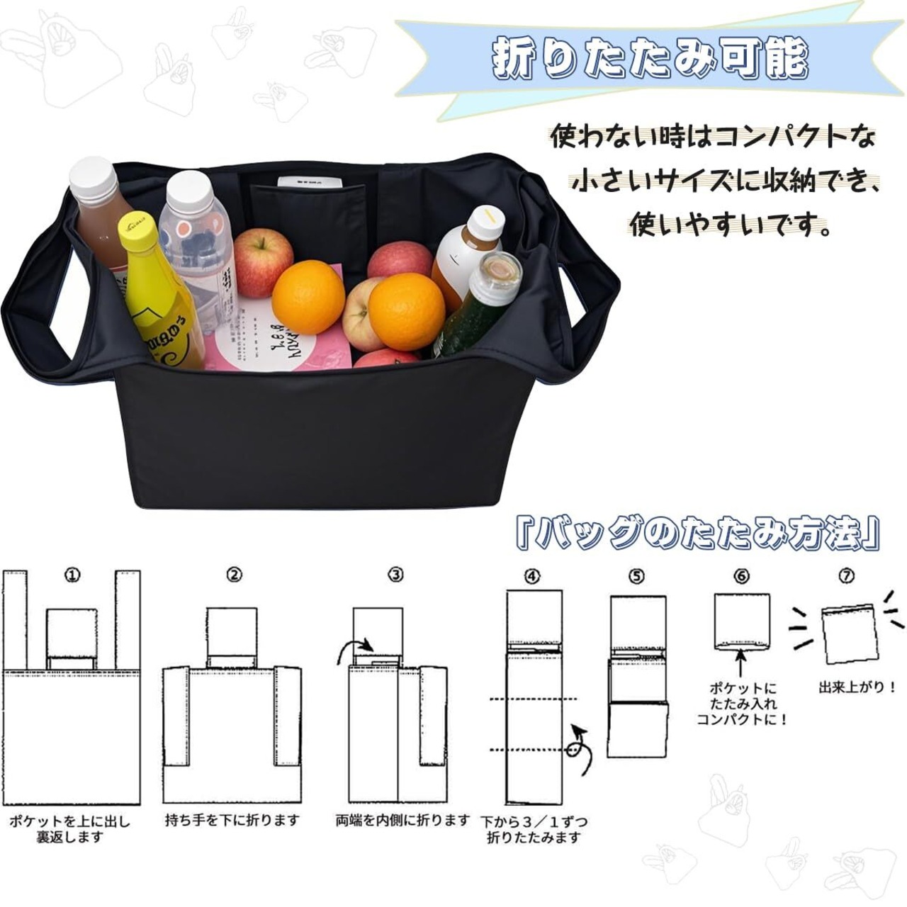 「洗えるエコバッグで快適エコライフ!」水洗いOKのエコバッグで清潔を保ちながら環境保護に貢献します。汚れてもサッと洗えて繰り返し使えるから、プラスチックごみ削減に。コンパクトに折り畳んで持ち運びも便利です。毎日使うものだから、衛生的で地球に優しい選択を。