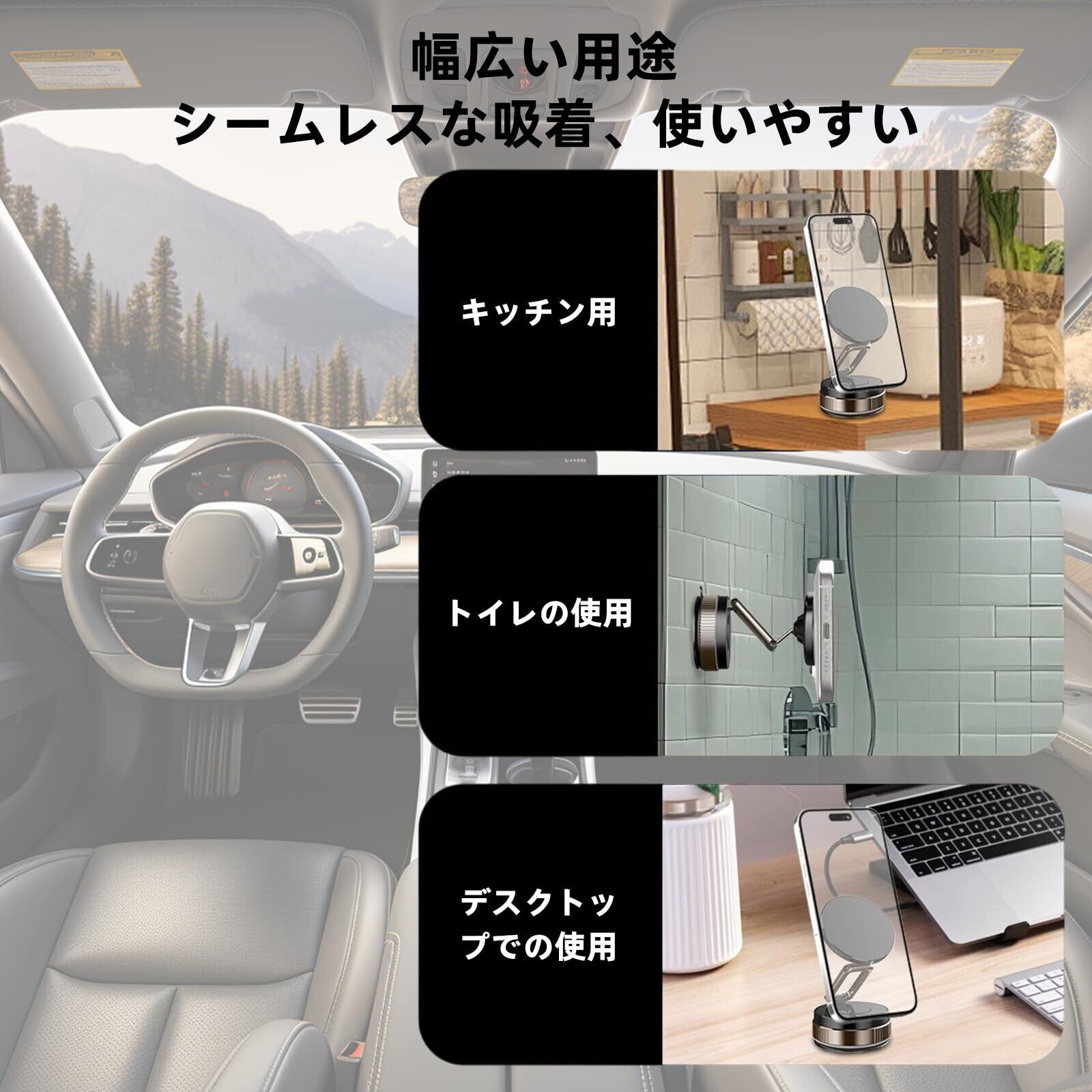車載スマホホルダー 2025 車 スマホスタンド | 真空吸盤 360°回転 & 180°調整 | 高端アルミ合金材質 | MagSafe & Android 全機種対応 | 安定性 片手操作 車内 & 家庭使用