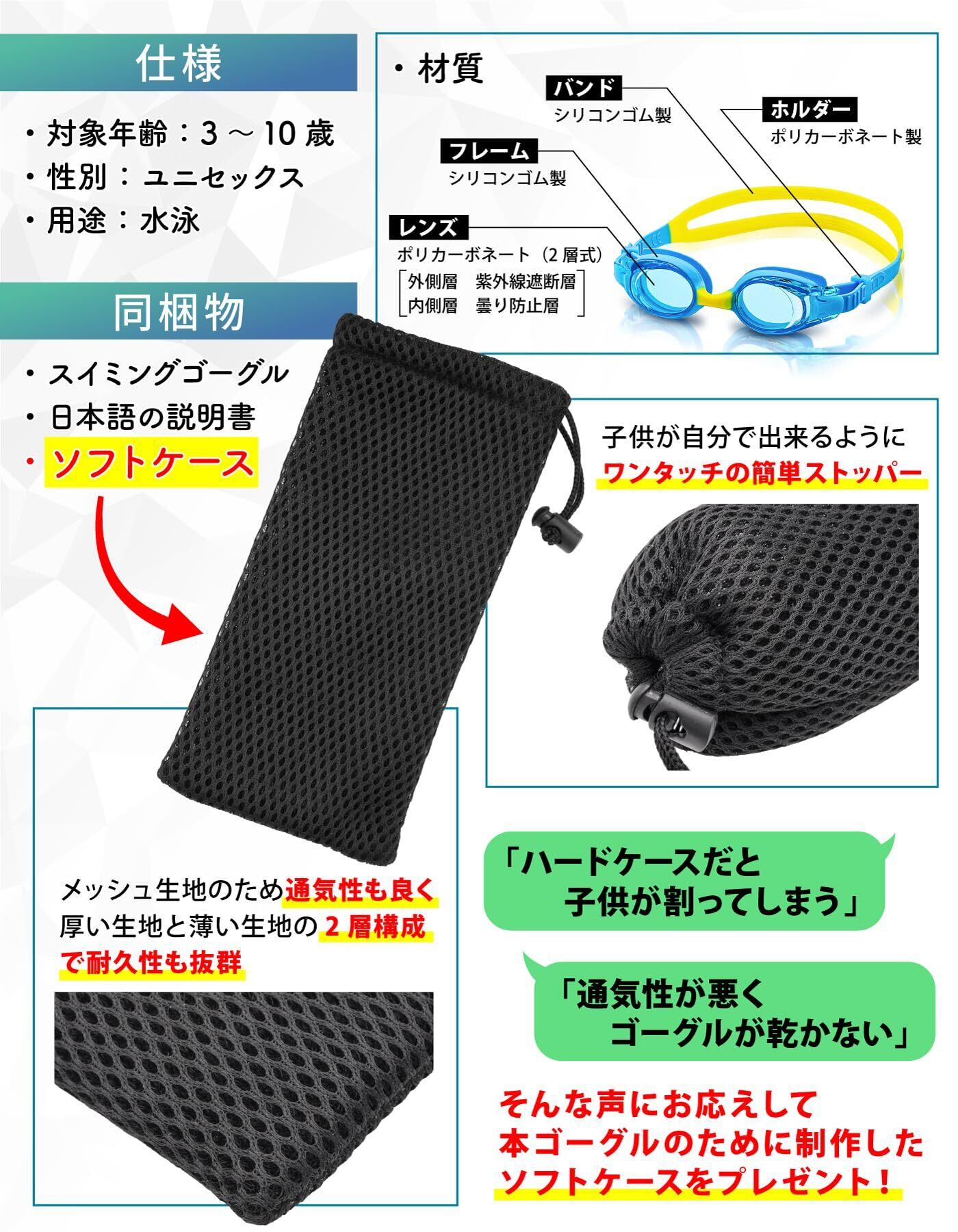 [Wal Base] ゴーグル 【子供のために設計されたスイミングゴーグル】【10色のカラーラインナップ】【柔らかいシリコンゴムで着け心地が良く水が入らない】 子供 小学生 水泳 水中メガネ