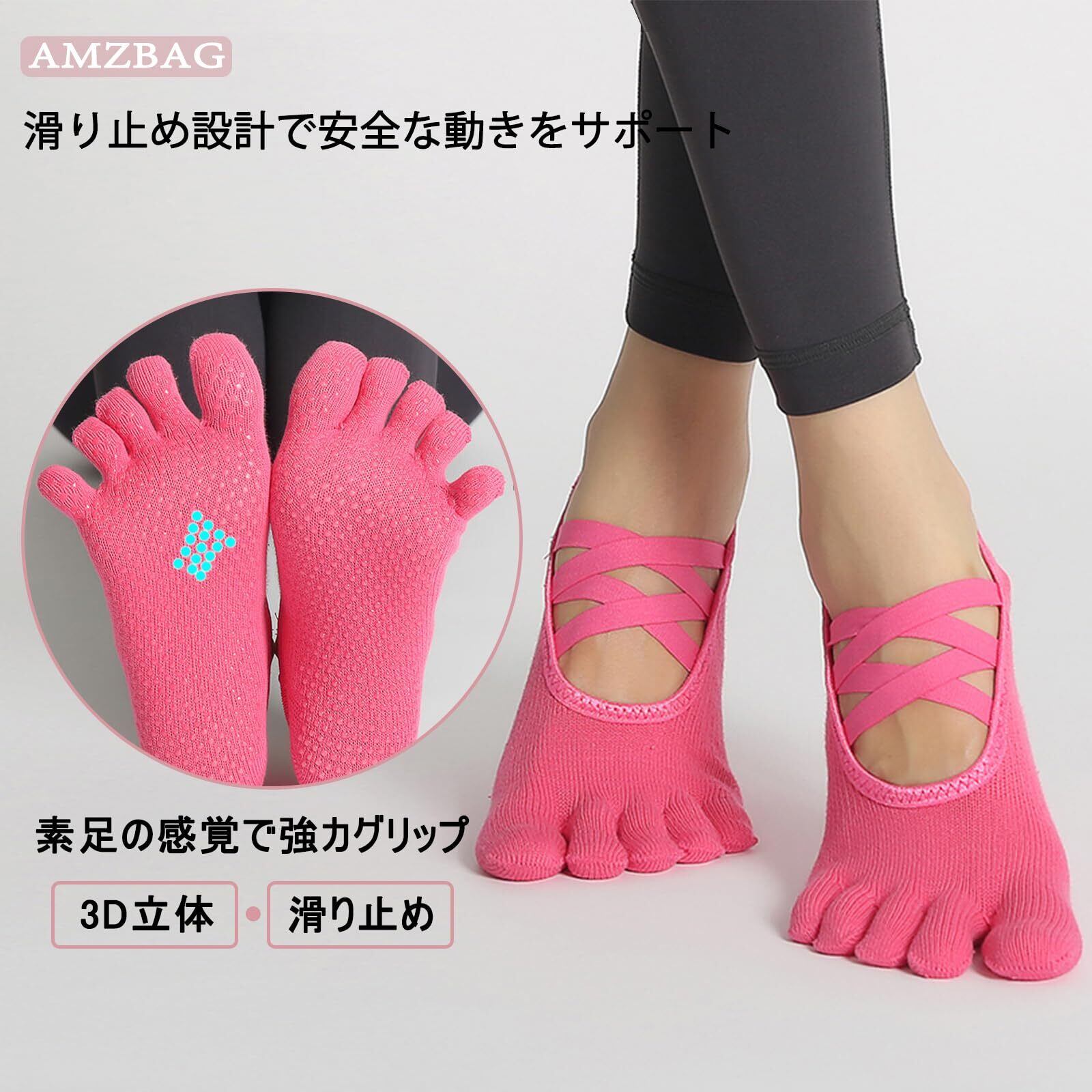 [Amzbag] ピラティス 靴下 5本指ヨガソックス 3D滑り止め ピラティス ソックス つま先あり 通気性 抗菌防臭 速乾 色あせない 汗対策 おしゃれ 室内運動 ダンス バレエ ジム用 フリーサイズ(対応22-25cm)