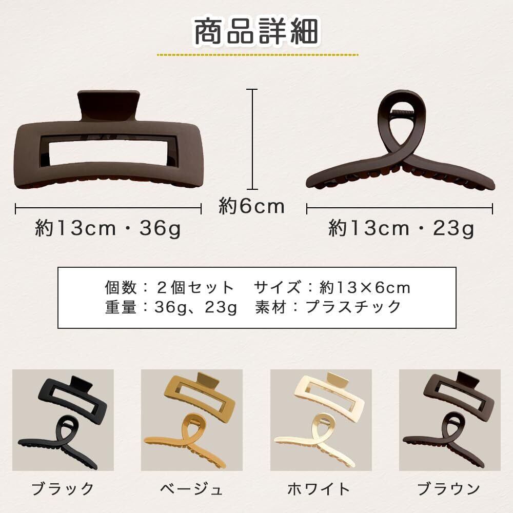 ロドリーミシェ 13㎝ 2個セット ヘアクリップ 大きめ シッカリトマル 毛量多い 髪留め 大きい 髪ドメクリップ バンスクリップ 可愛い シッカリ お風呂 ヘアアクセサリー No19 ブラウン