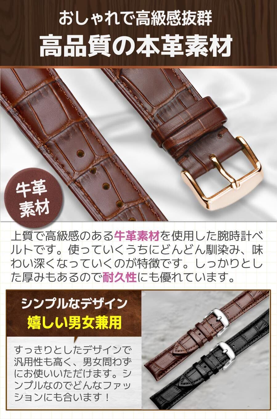 【商品特徴】①高級感のある牛革:上質な牛革素材で高級感を演出!/②選べる対応サイズ:お使いの時計に合うサイズが見つかる/③男女兼用のデザイン:シンプルなデザインなので合わせやすい/④優れた耐久性:高い耐久性で長く使用することが可能
