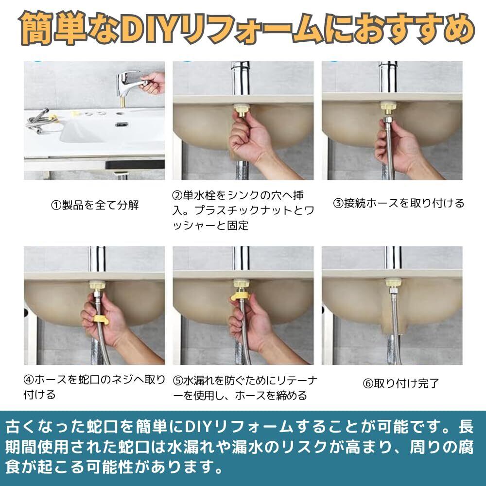 簡単なDIYリフォーム可能: 古くなった蛇口を簡単にDIYリフォームすることが可能です。長期間使用された蛇口は水漏れや漏水のリスクが高まり、周りの腐食が起こる可能性があります。お早めの交換により、予期せぬ出費を防ぐことができます。