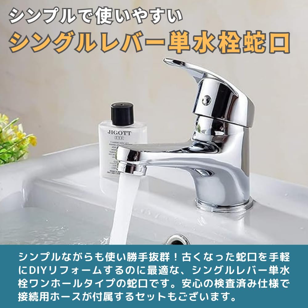 【シンプルで使いやすい、シングルレバー単水栓蛇口】シンプルながらも使い勝手抜群!古くなった蛇口を手軽にDIYリフォームするのに最適な、シングルレバー単水栓ワンホールタイプの蛇口です。安心の検査済み仕様で接続ホースが付属するセットも。美しさと機能性を兼ね備えたお手頃な蛇口リニューアルにおすすめです!