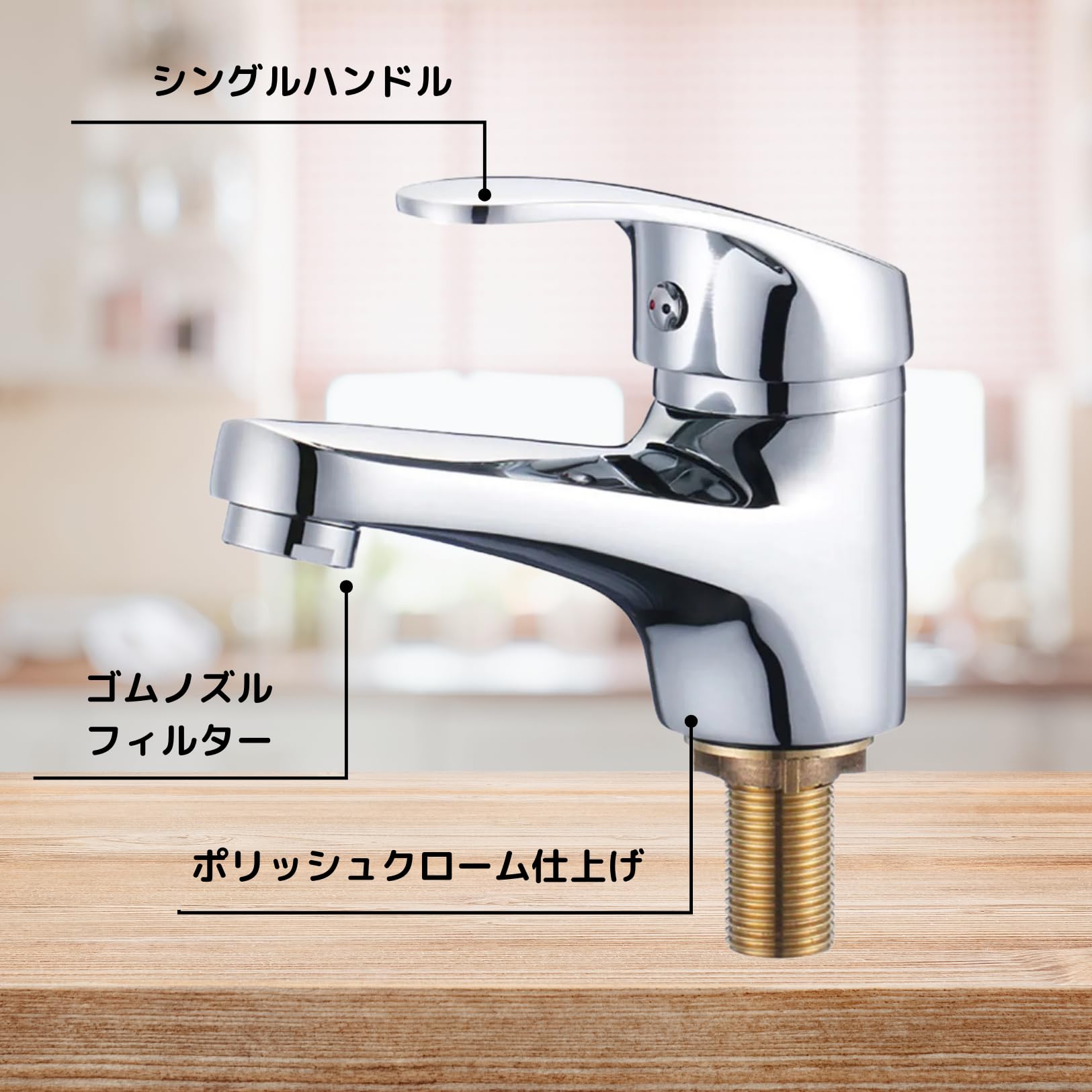 シングルレバー単水栓 ワンホールタイプ: シンプルで使い勝手の良い『レバー型ハンドル』を備えたワンホールタイプの単水栓です。洗面台やトイレなど、様々な場所で利用可能です。