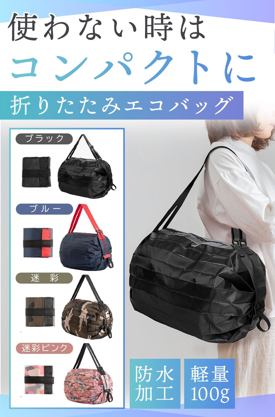 【商品特徴】①わずか100gの軽量:軽量且つコンパクトで持ち運びに便利!/②高耐久ストラップ:耐久性や伸縮性に優れ長く使える/③耐荷重に優れた素材:重いものや大きいものにもしっかり対応/④お買い物や旅行に:日常のあらゆるシーンに使用できる!