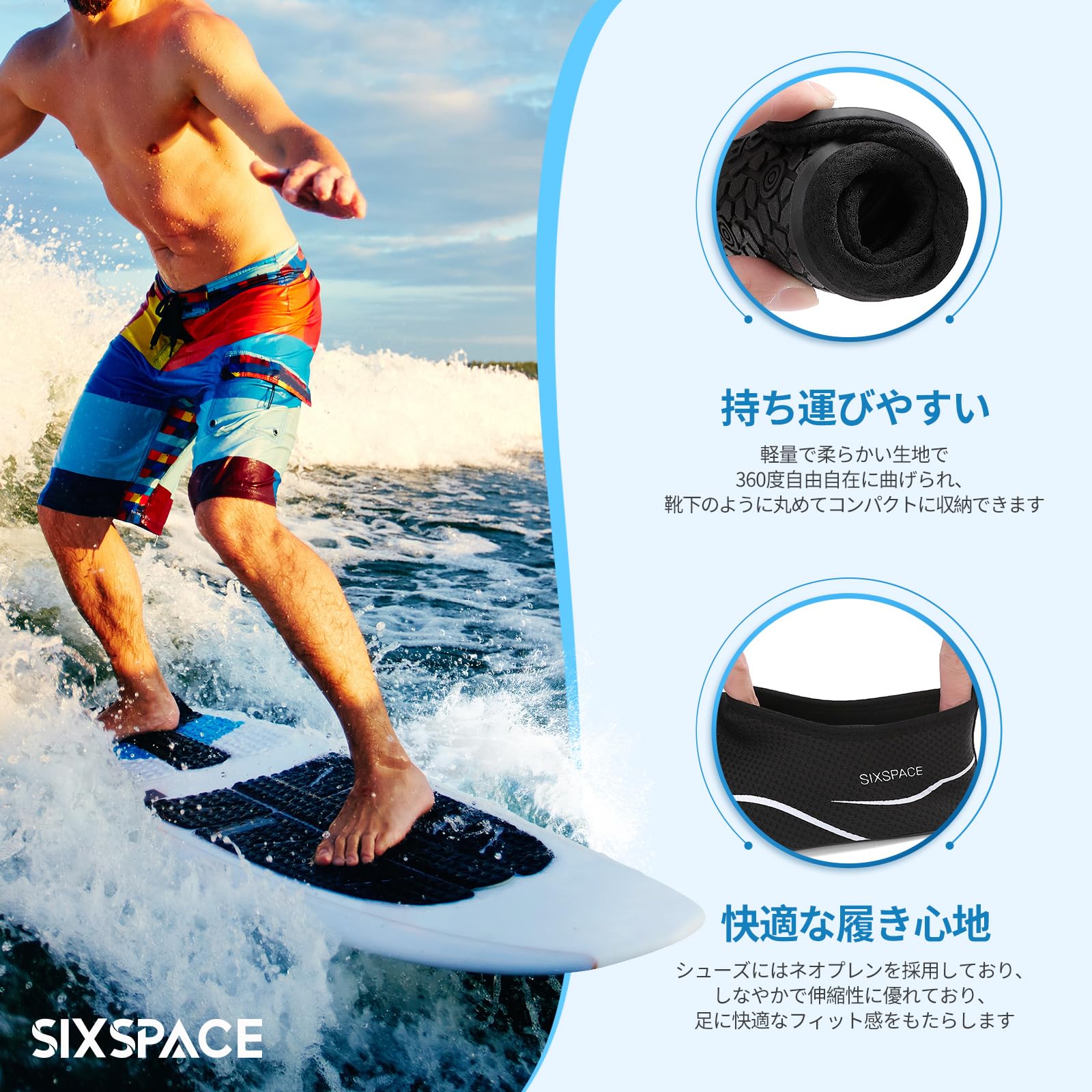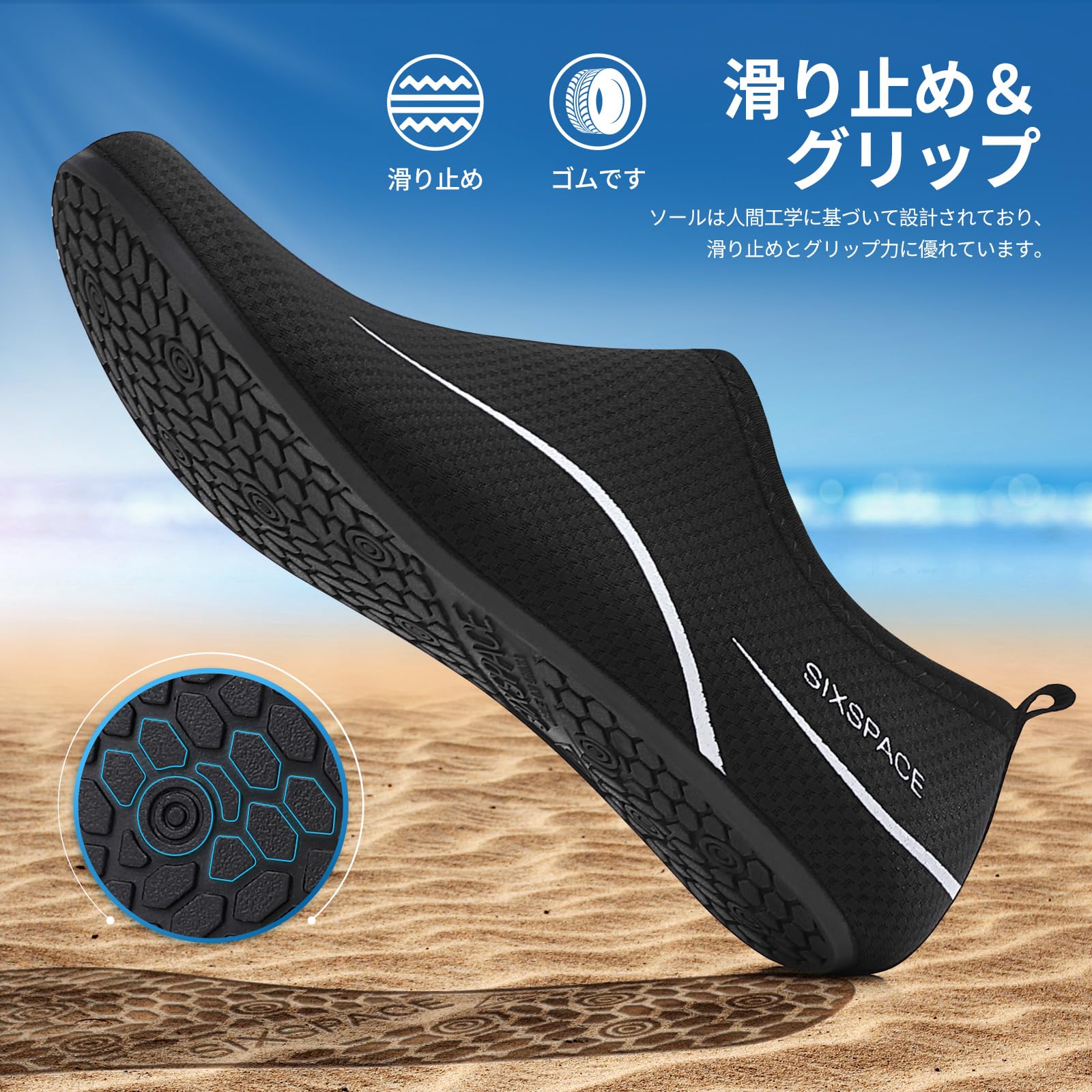[SIXSPACE] マリンシューズ ウォーターシューズ 男女兼用 アクアシューズ フィットネスシューズ レディース メンズ 軽量 通気 滑り止 ヨガ サーフブーツ