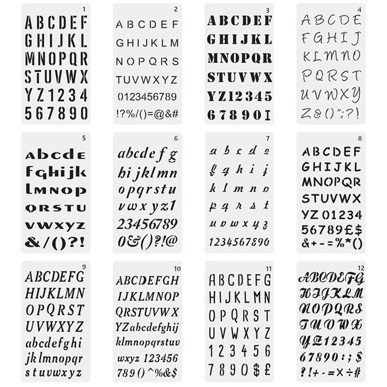 【種類が多い】このセットには、異なるデザインの12枚のステンシルシートが含まれています 。各種のアルファベット 、数字、句読点および最も一般的な記号が揃えております。多くのテンプレートがあり、さまざまな絵画のニーズを満たすことができます。自由自在に組み合わせてアレンジを楽しみましょう!