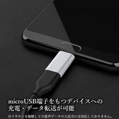 現在お持ちのType-Cケーブルを使って、Android端末やタブレットや様々なmicroUSB端子も持つデバイスへの充電・データ転送が可能になります。