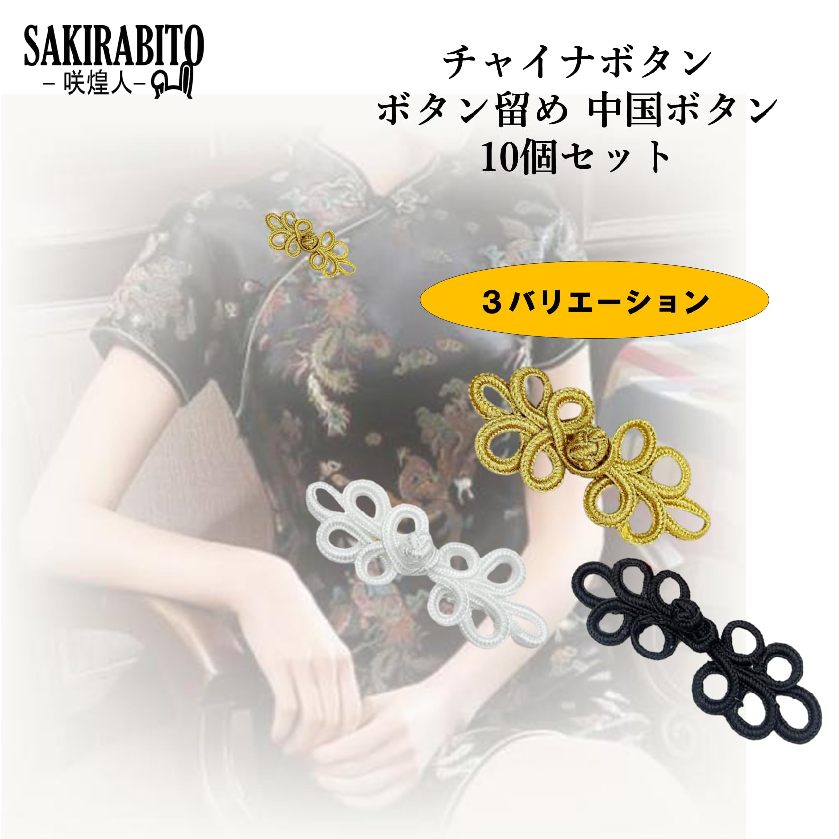SAKIRABITO チャイナボタン 10個セット ボタン留め 中国ボタン チャイナドレス 留め具 (ゴールド)