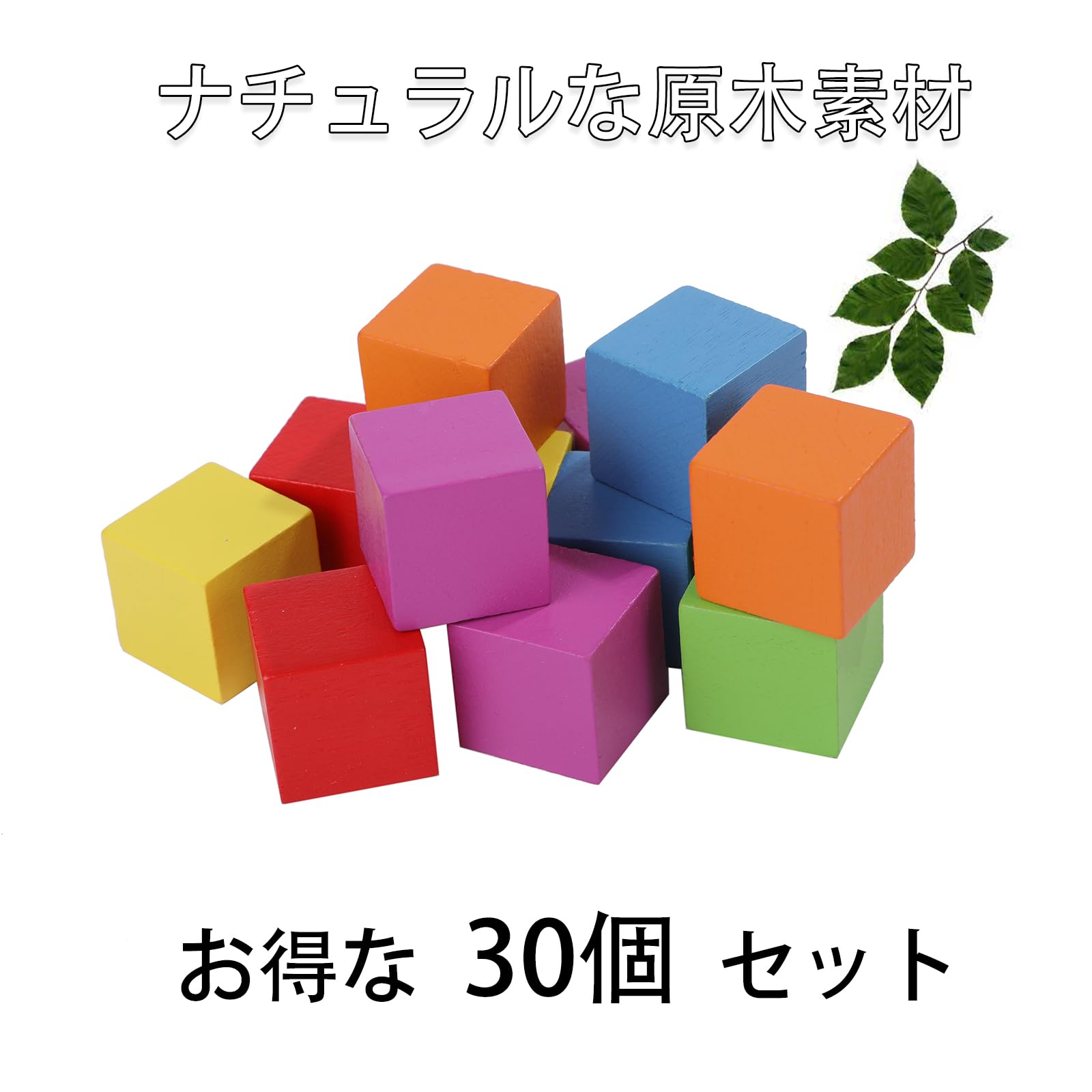 ピュアシーク ブロック 30個セット 木製 積み木 玩具 算数 図形 立方体 おもちゃ (カラフル 3cm×3cm)