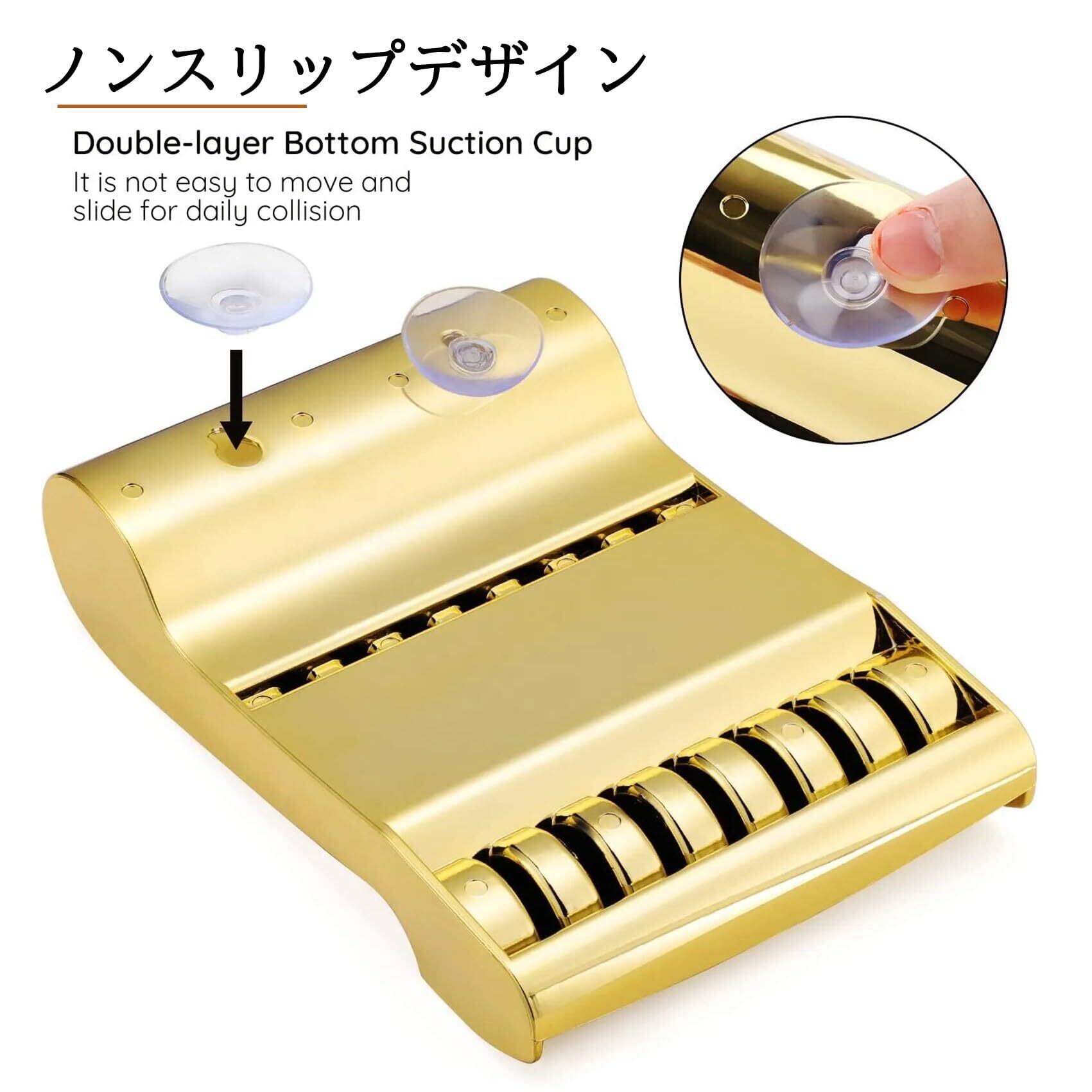 このシザーケースはノンスリップ仕様となっており、底部に吸盤を2カ所装備し高い吸引力で置き場所にグリップし激しい動きでも滑りにくい設計となっております。