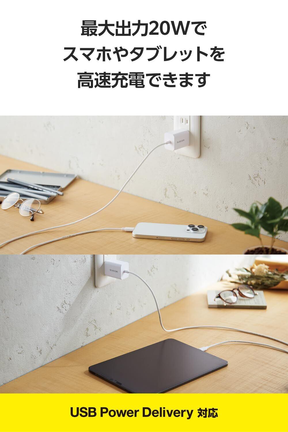エレコム 充電器 Type-C USB-C 20W USB PD対応 ケーブル一体型 1.5m PSE認証品 GaN採用 折りたたみ式プラグ ホワイト 【 iPhone16 15 等対応】 EC-AC6920WH