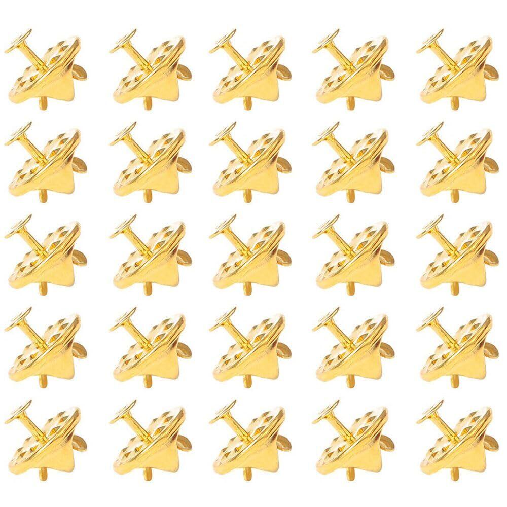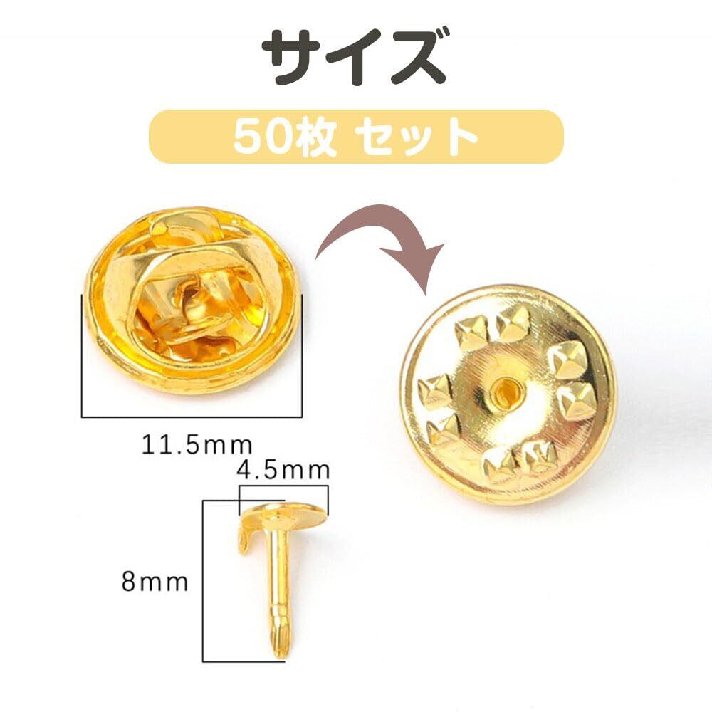 ESJNNK ピンバッジ 留め具 50個セット 直径11.5mm 蝶タック金具 キャッチ金具 ゴールデン バタフライ型クラッチ 土台の広い針 パーツ ピンズ 服飾小物のDIY 貼付用