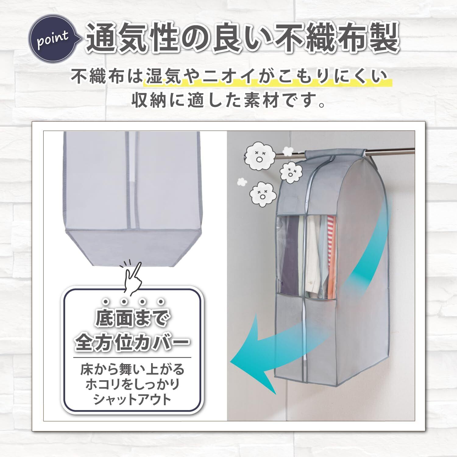 アストロ 衣類カバー グレー マチ付き ワイド ショートサイズ 吊り下げたまま使えるゆったりシワになりにくい 洋服収納 不織布 衣装ケース スーツ クローゼット 吊り下げ収納 透明窓 防虫剤ポケット付き 底閉じタイプ まとめて収納 167-10