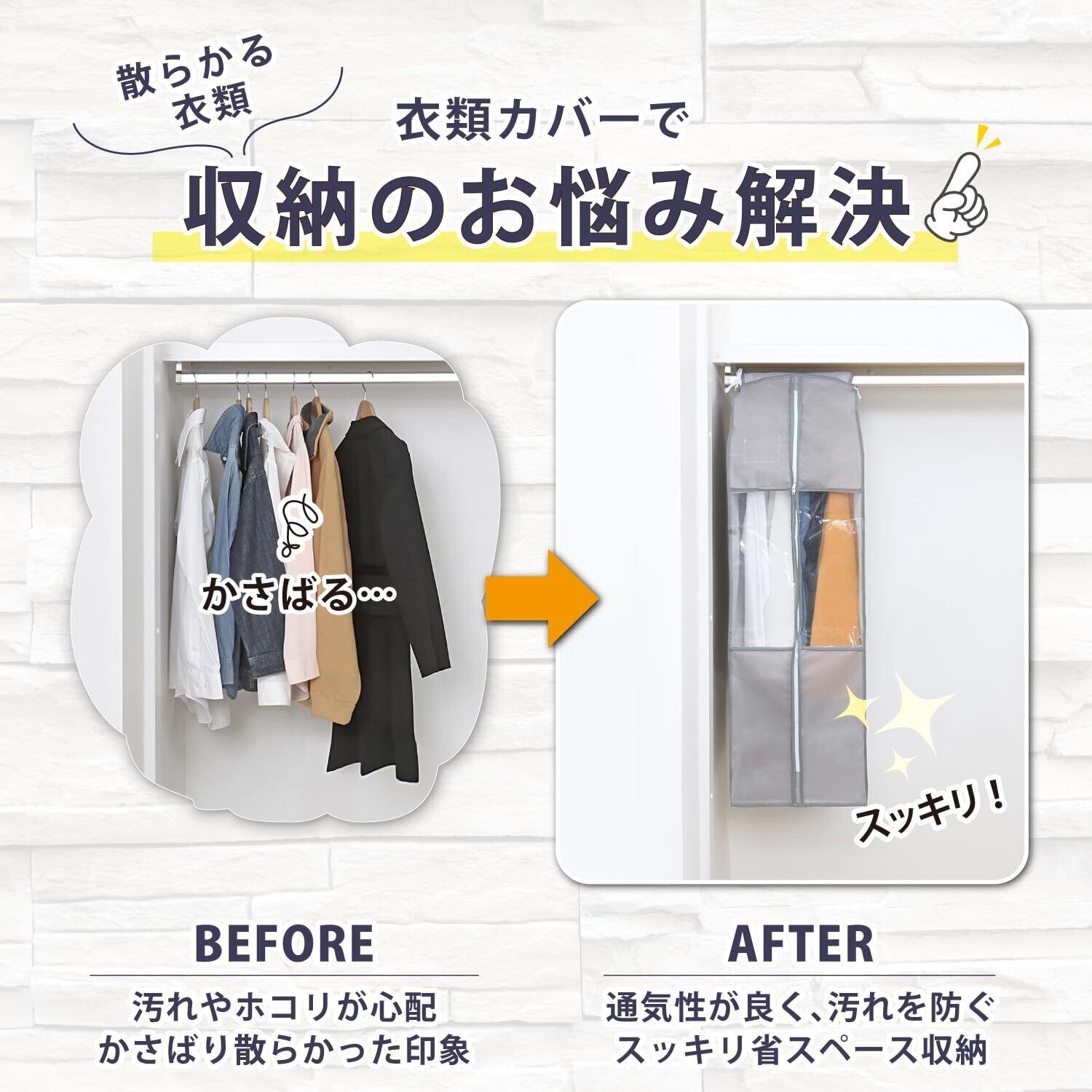 【衣類をまとめて保管】:オフシーズンの洋服をまとめてホコリなどの汚れから守ります。5~7枚までの衣類の保管が可能。