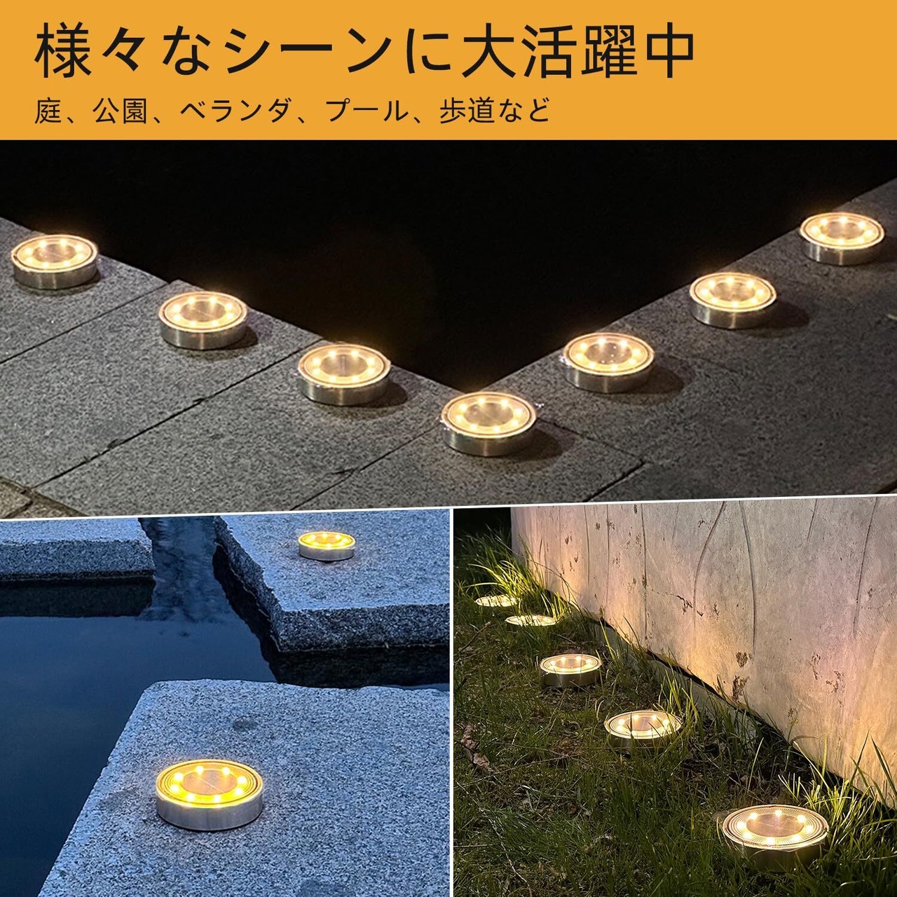 高輝度な8LED照明:6LM LEDを搭載しており、夜間にしっかりとした明るさを提供します。特に庭や玄関先、芝生、駐車場、歩道などの屋外スペースを照らすのに最適です。明るい光は、訪れる人々や通行人に安心感を与え、静かな夜道の見通しを良くします。また、環境に優しいLED技術により、電気代の心配がないのも魅力です。