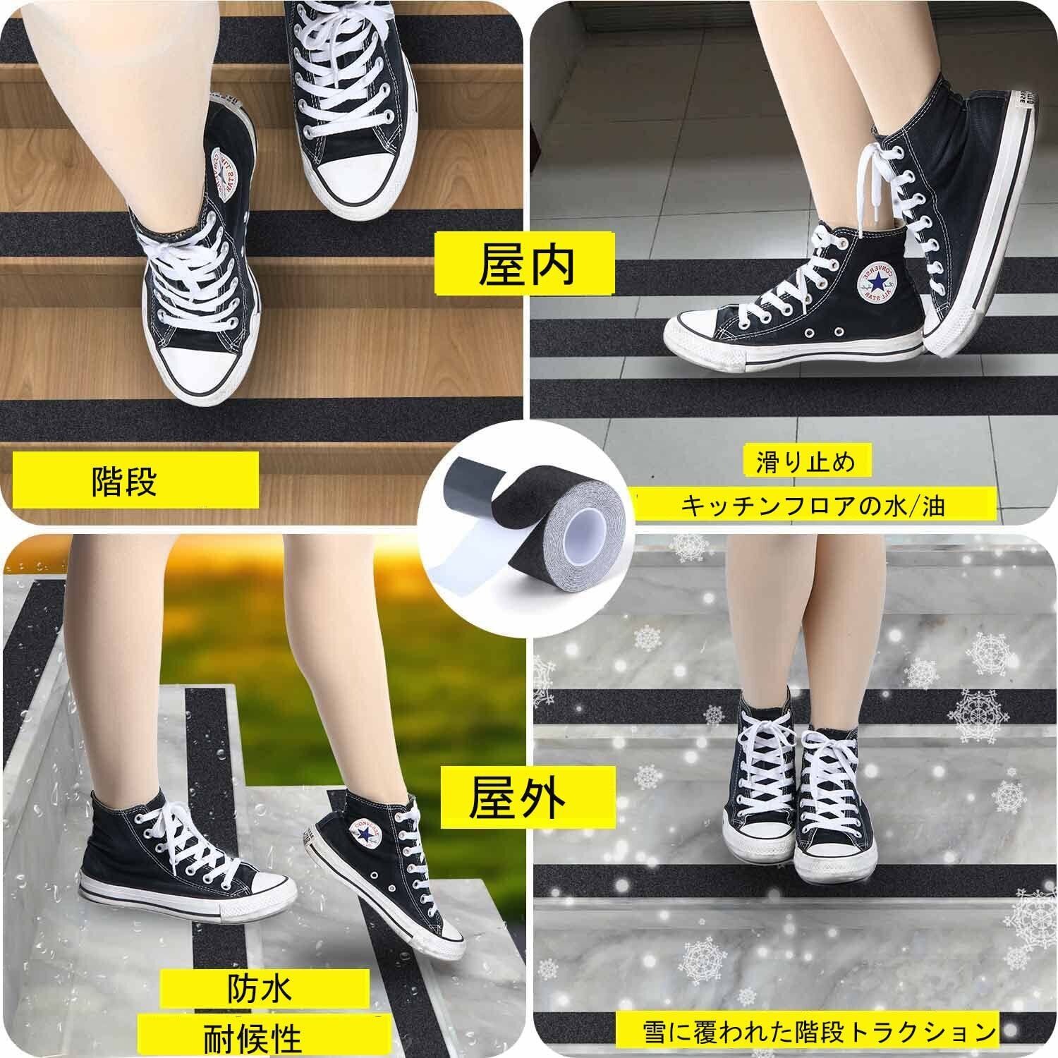 【滑り止めテープ】防水で、テープはアップグレードされた環境に優しく、安全で強力な粘着性の防水階段巻き込みでコーティングされており、防水性があり、落下を防ぎます。