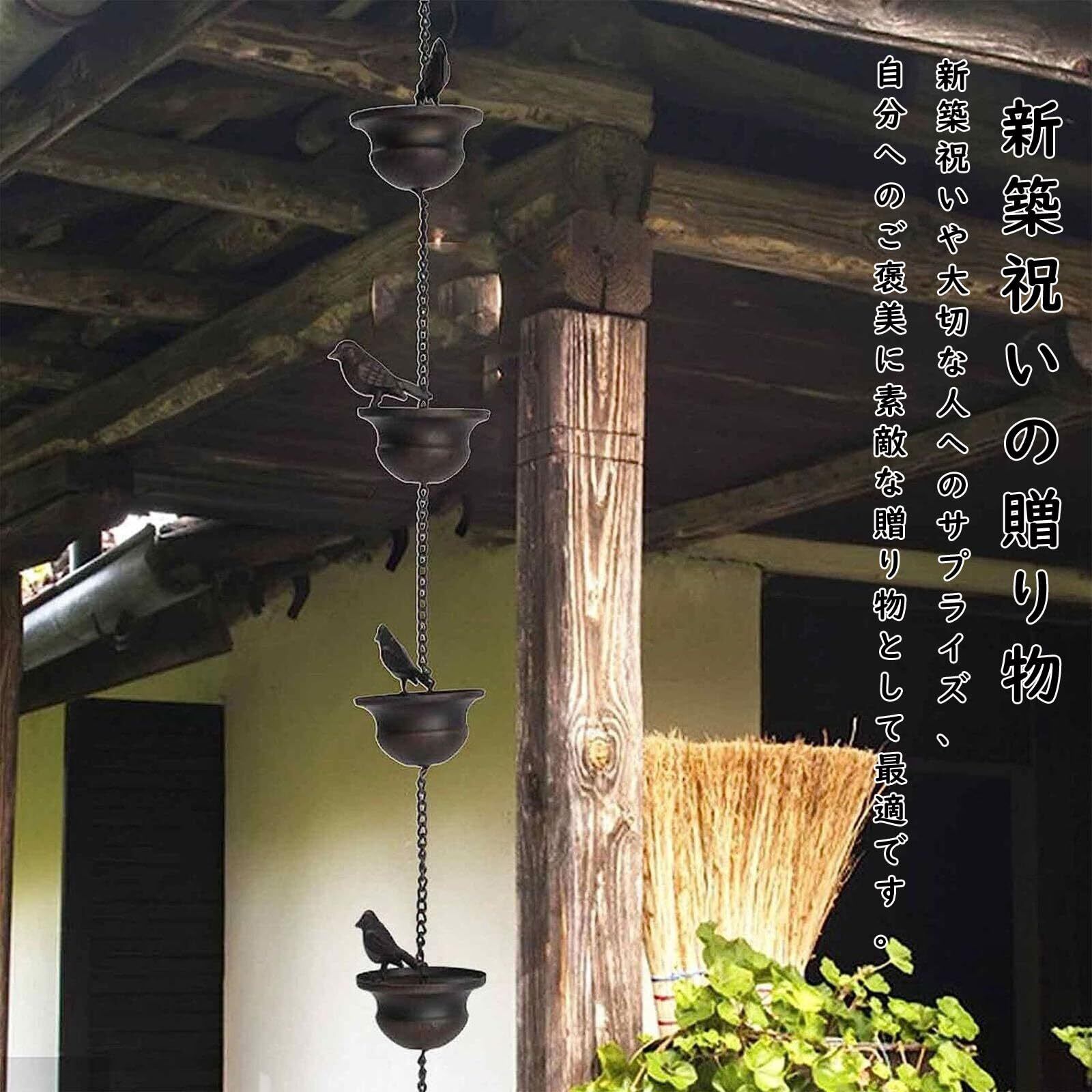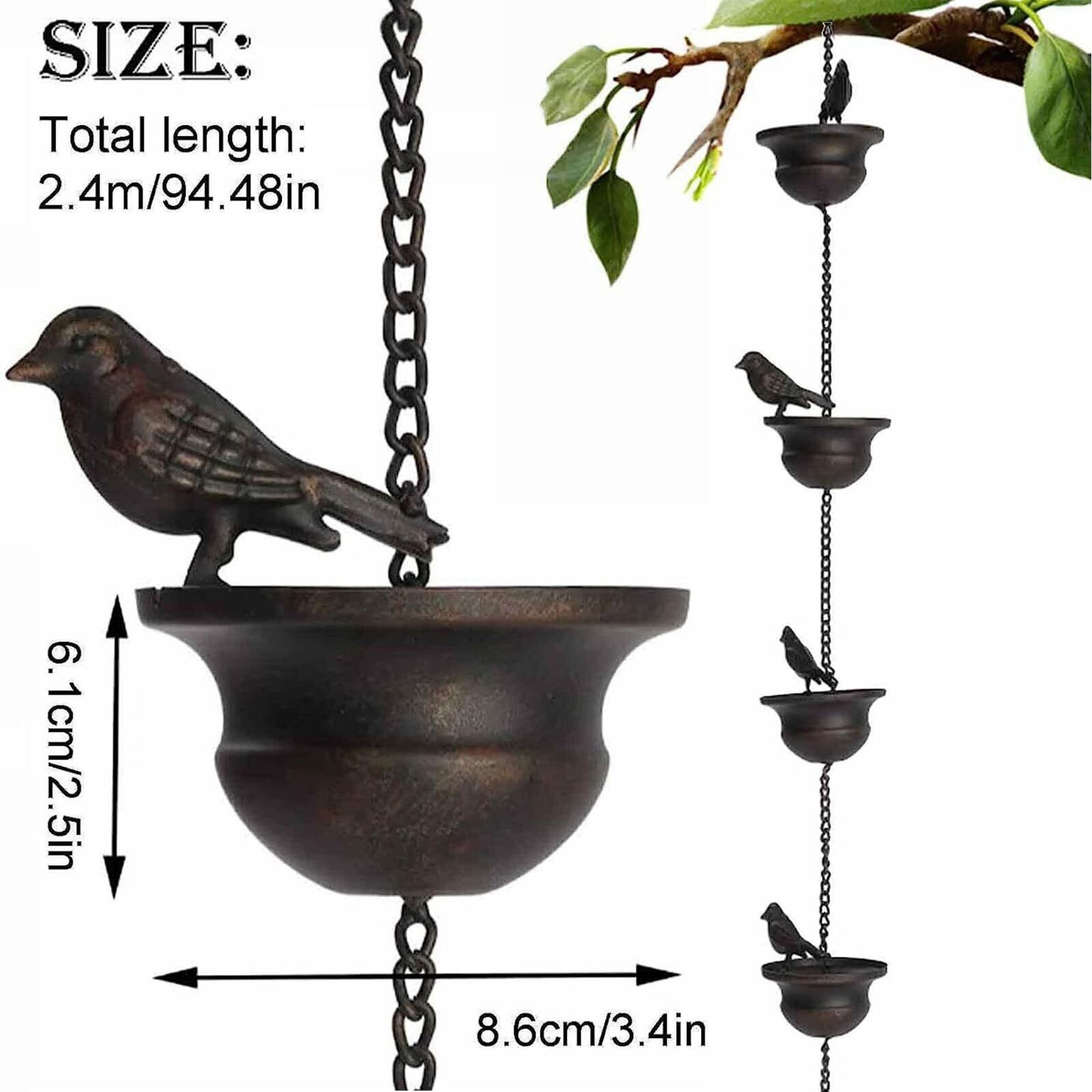 Refoiner 雨樋雨 どい 部品 側溝用雨鎖 レインチェーン 可愛いカップの上に鳥鎖樋 カーポート 雨樋新居用 吊り下げ金属製風鈴 ウィンドチャイム癒し音 庭飾り 雑貨 室外室内装飾ギフト 取り付け簡単長さ2.4M