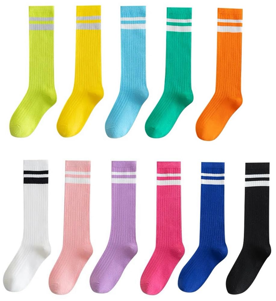 [InSomila] [インソミラ] 選べる11色 子供ソックス ラインソックス キッズ ハイソックス 靴下 リブ編み ボーダーソックス ニーハイ チーム衣装 運動会 目立つ 蛍光色