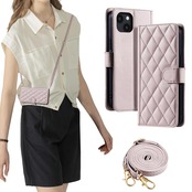 laddutoi FOR いphone14plus ケース iphone 14 plus ケース 手帳型 おしゃれ ストラップ付き スタンド機能 カード収納 軽量 薄型 耐衝撃 高級PUレザー 滑り防止 財布型 内蔵マグネット 開閉式 チェック柄 上質 耐摩擦 マグネット式 肩掛け 斜め掛けーピンク