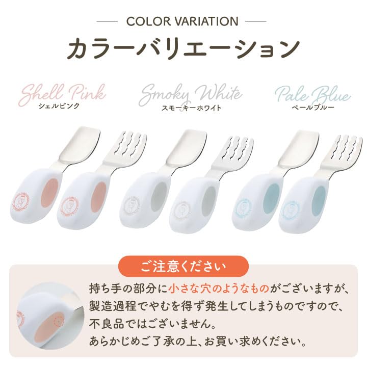 【食べやすいからお食事がどんどん楽しくなる】 フォーク先端は凸凹のデザインで麺類や果物類などが滑り落ちない設計になっています。 また、スプーン先端は平らになっているので、お皿の隅まですくいやすい設計になっています。 お子様に“できる喜び”を体験してもらいやすい独自デザインが完成しました。