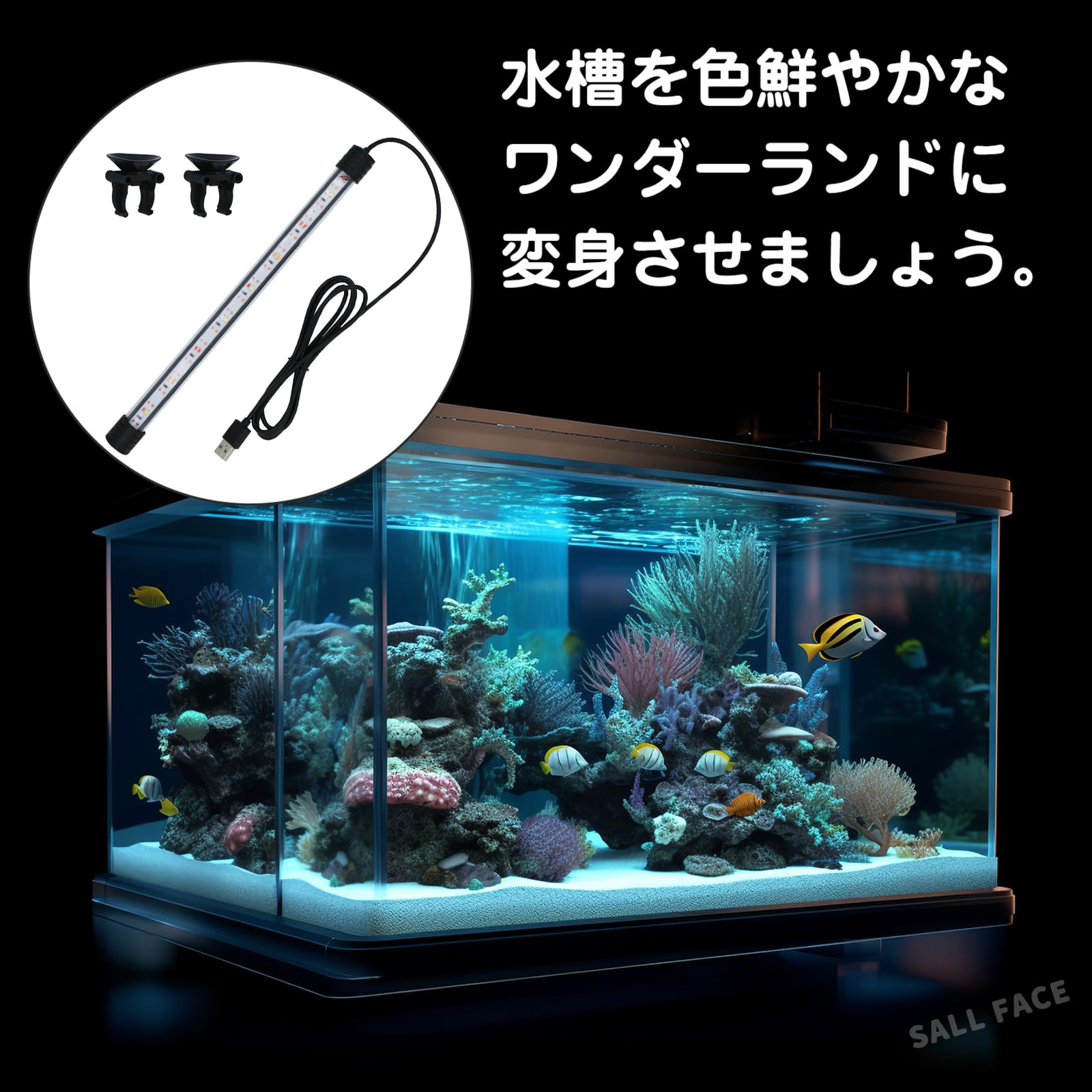 ϑカラフルなイルミネーション: 赤、青、ピンク、緑の4色のライトビーズが鮮やかに色づき、カラフルな照明効果を生み出します。美しく魅力的な水中世界を演出します。活気に満ちた水族館に理想的な明るさを提供します。光は水草の成長を促進し、魚の色を強調し、より美しく生き生きとさせます。