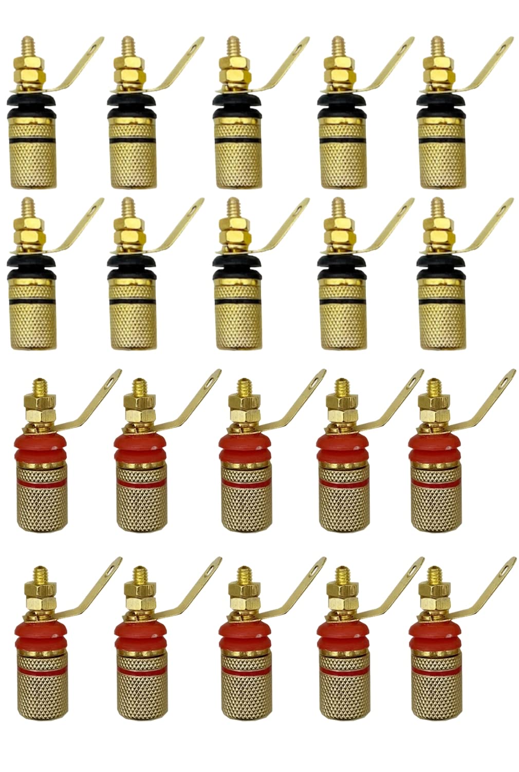 shymie 金メッキ スピーカー ターミナル バナナ プラグ 対応 端子 ピン 3.3cm オーディオ ステレオ 赤 レッド 黒 ブラック 各10本 20本
