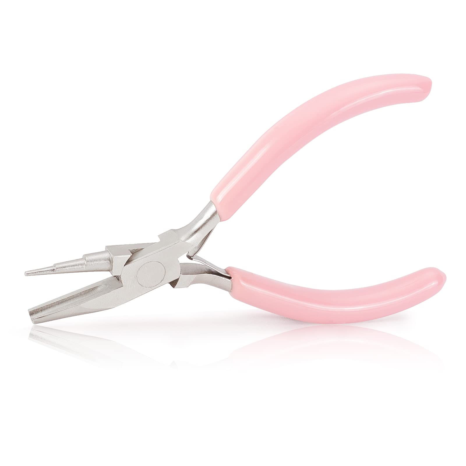 BENECREAT ジュエリーペンチ 凹型&丸型ノーズ ワイヤーループ ペンチ プライヤー ワイヤー曲げツール 手芸ペンチ 手芸用工具 アクセサリ用工具セット収納ケース付 手作り アクセサリー ビーズ 製作 クラフト ハンドメイド DIY 道具 ピンク