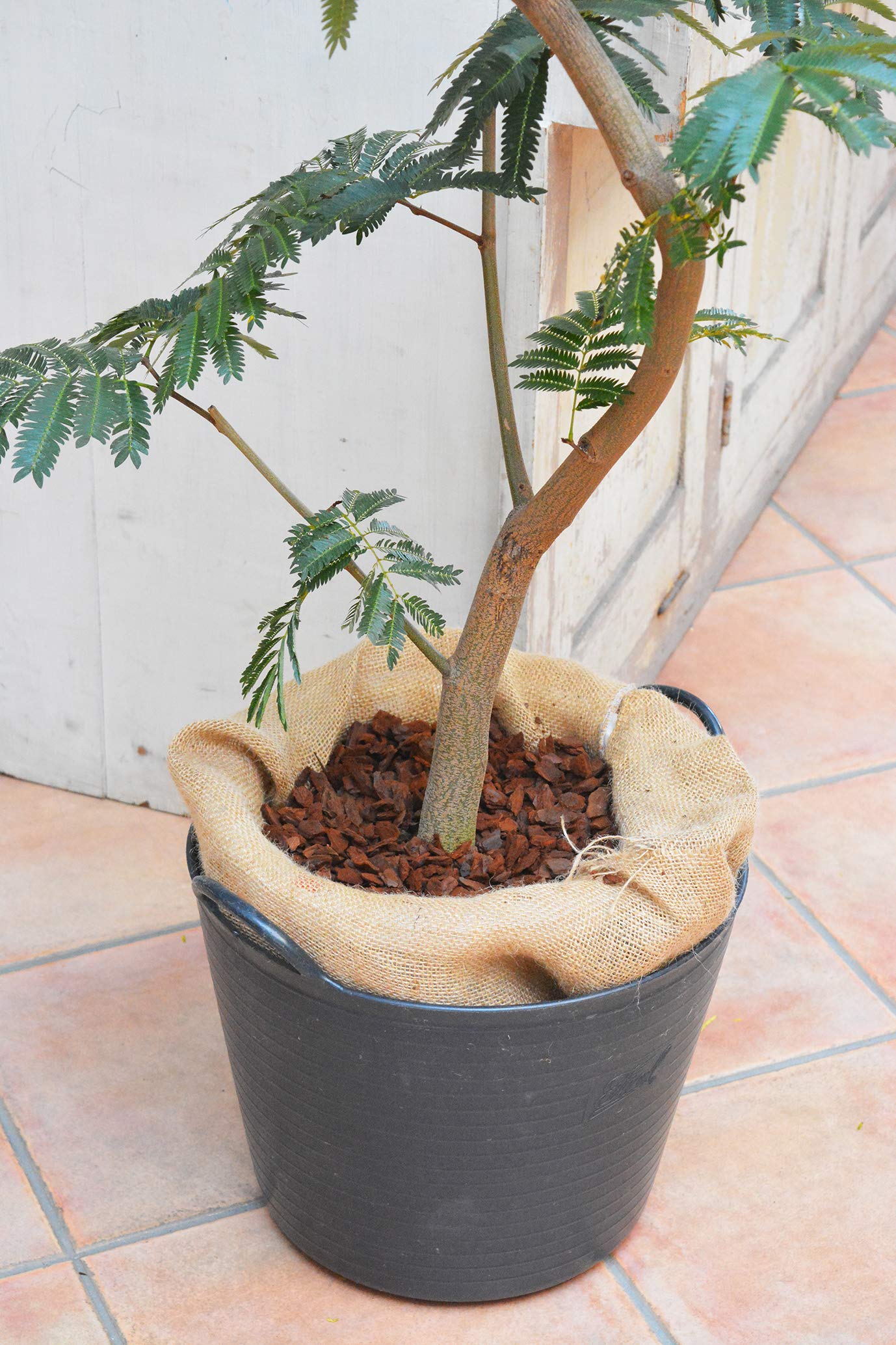 ●明るいブラウンのチップがコンテナの植物を美しく引き立たせます