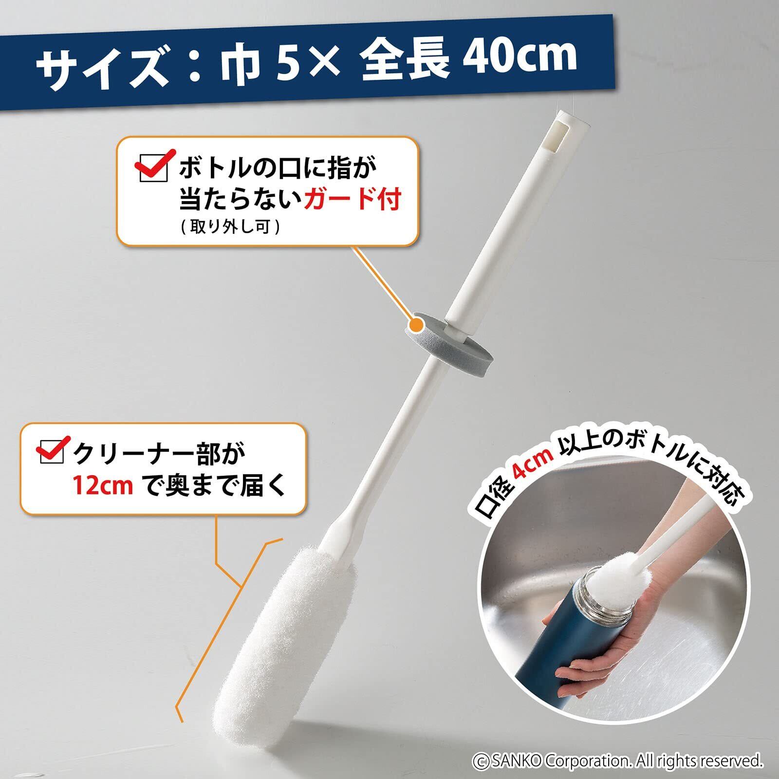 Sanko【日本製】サンコー ブラシ ステンレスボトル洗い 水筒 冷水筒 タンブラー ボトル 哺乳瓶 水だけでも汚れが落とせる特殊繊維 びっくりフレッシュ ホワイト BH-20
